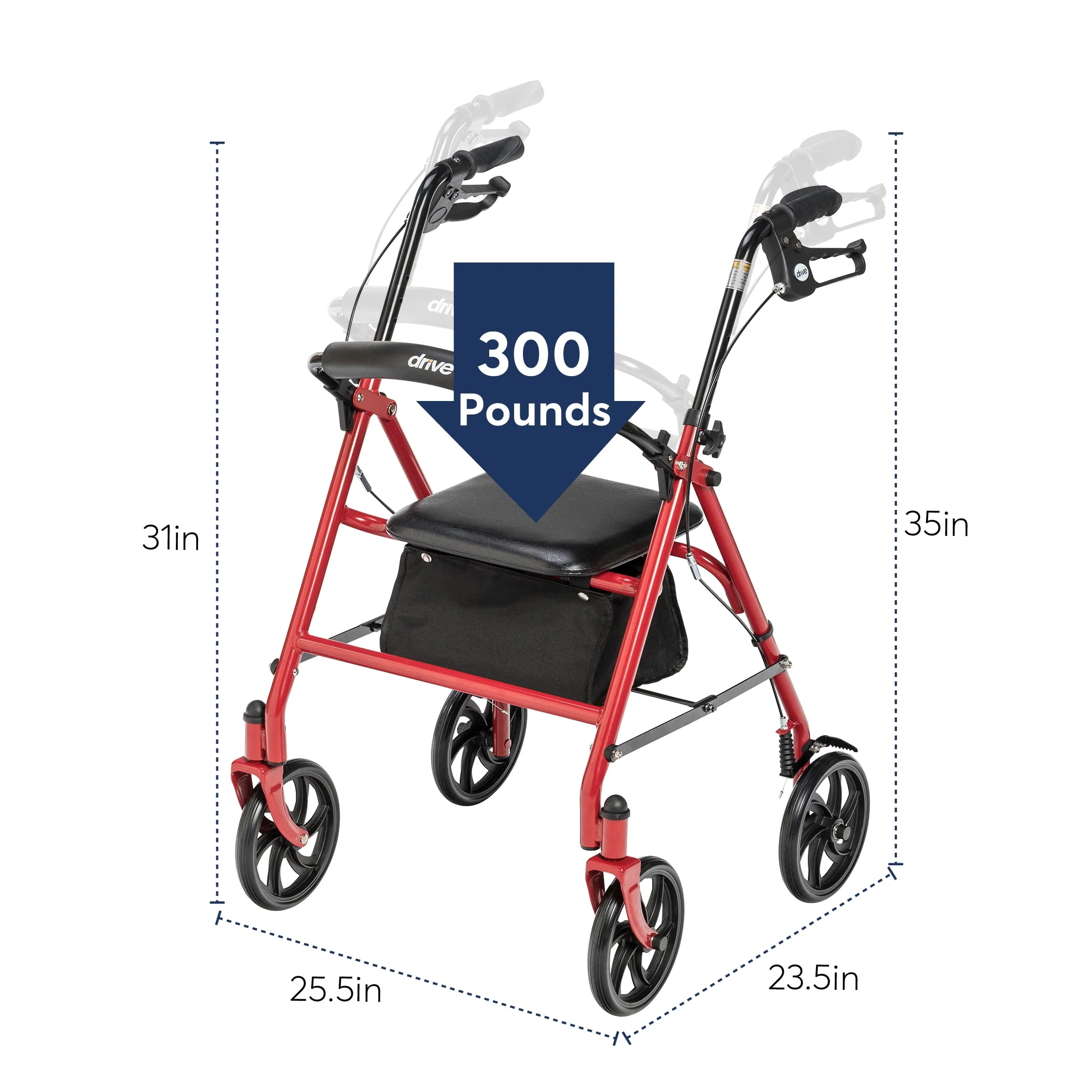 Drive Medical 10257RD-1 Durable 4-Wheel Rollator with 7.5 Casters, Red
