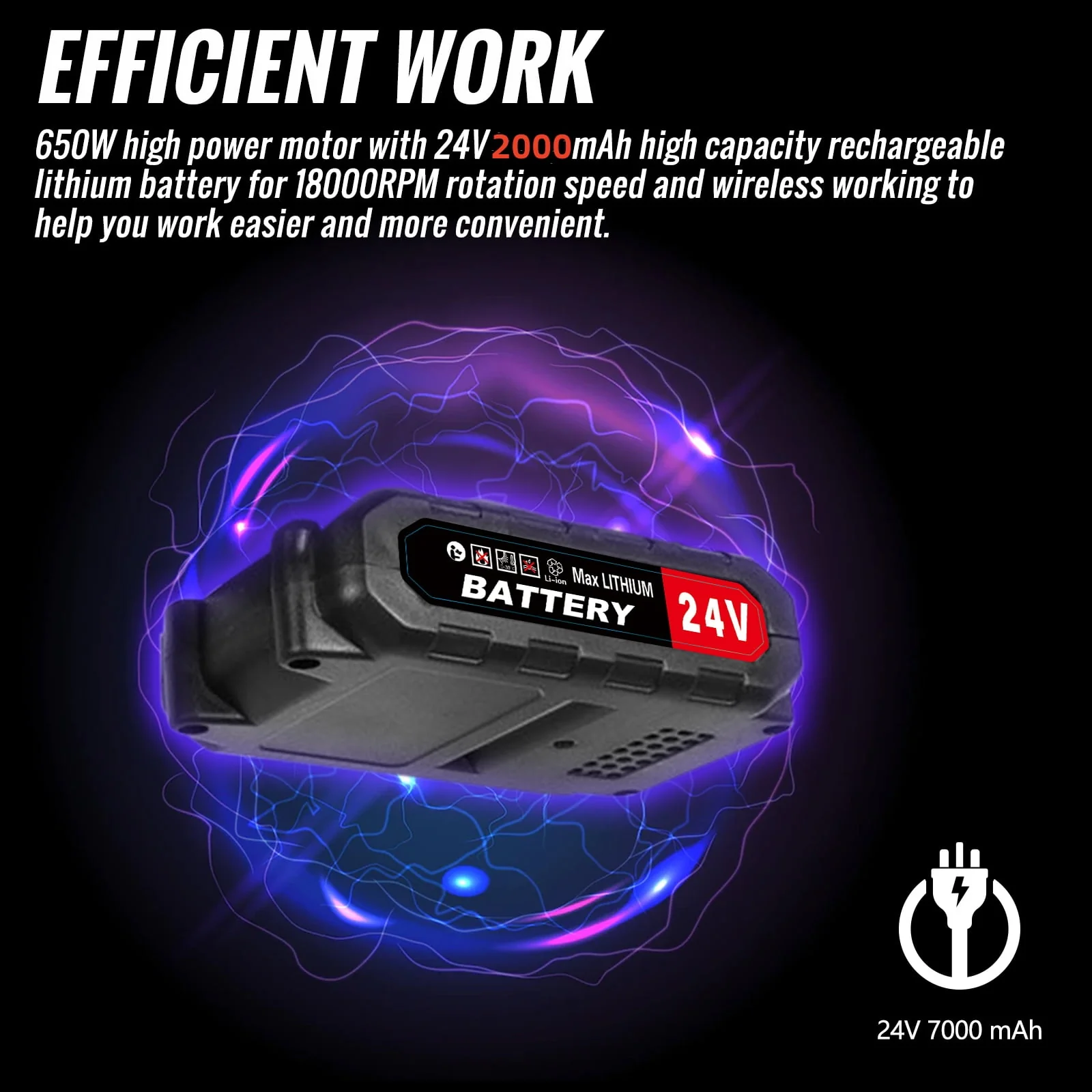 24V 650W Lawn Mover Electric Grass Trimmer Cordless With Batteries, Battery Weed Eater, Electric Weed Wacker, Lawn Mower Cordless Pruning Cutter Weed Wacker Garden Trimming Tool, Black