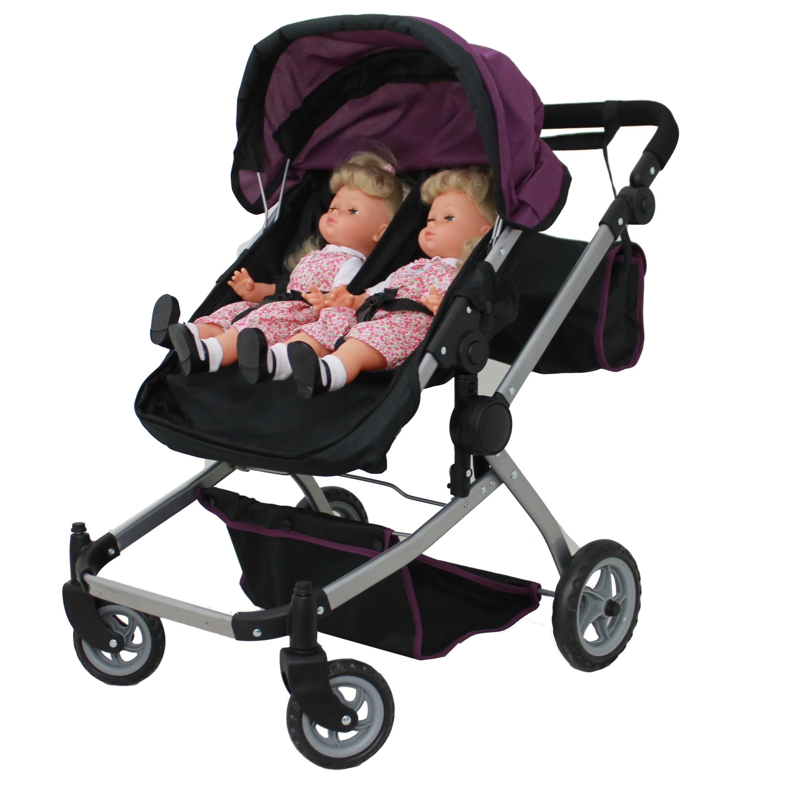 Babyboo Deluxe Twin Doll Pram/Stroller Purple & Black with Free Carriage Bag - Avayadevconnect