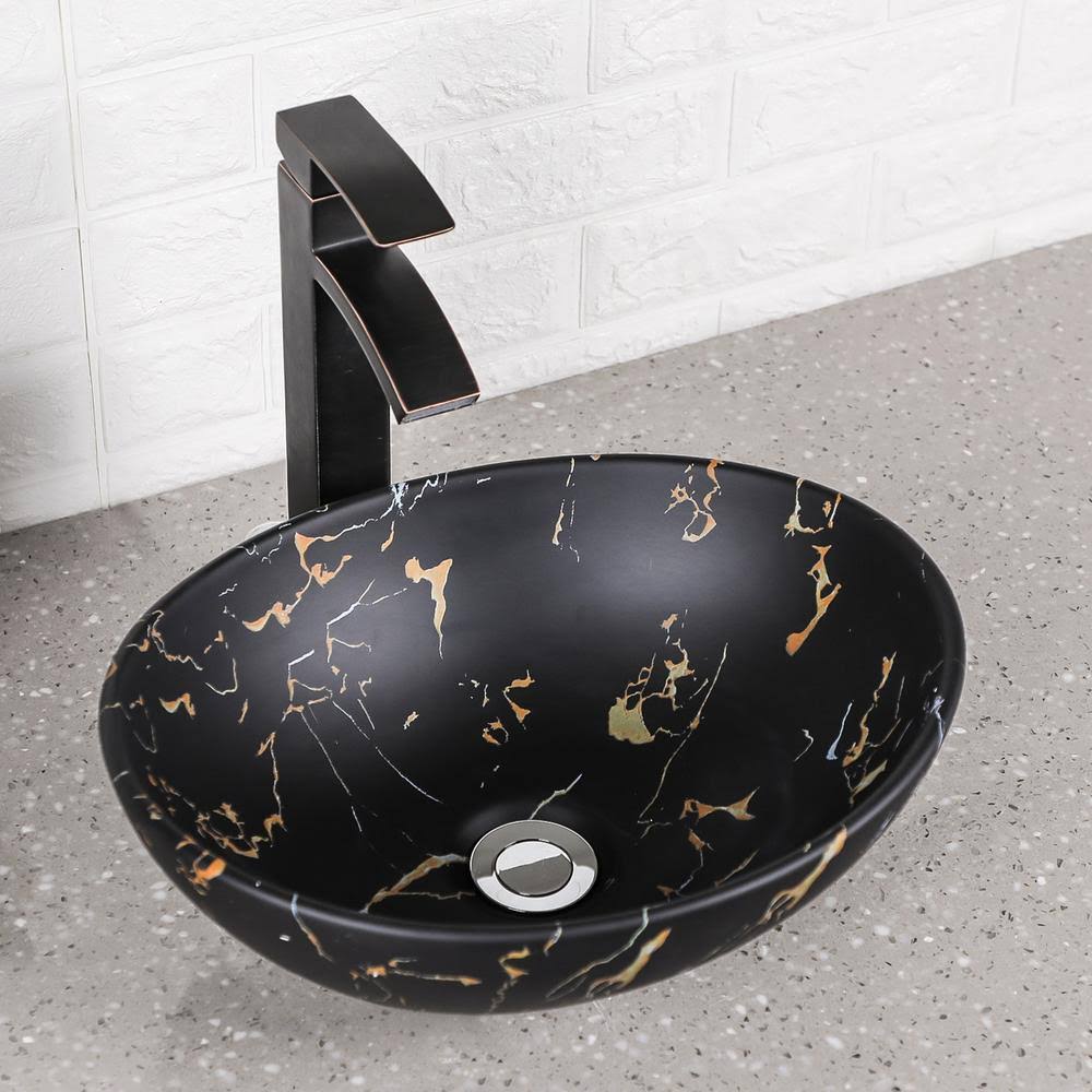 Magic Home 16 in.x 13 in. Black Ceramic Oval Bathroom Vessel Sink Modern Egg Shape Above Counter Bathroom Vessel Vanity Sink - Avayadevconnect