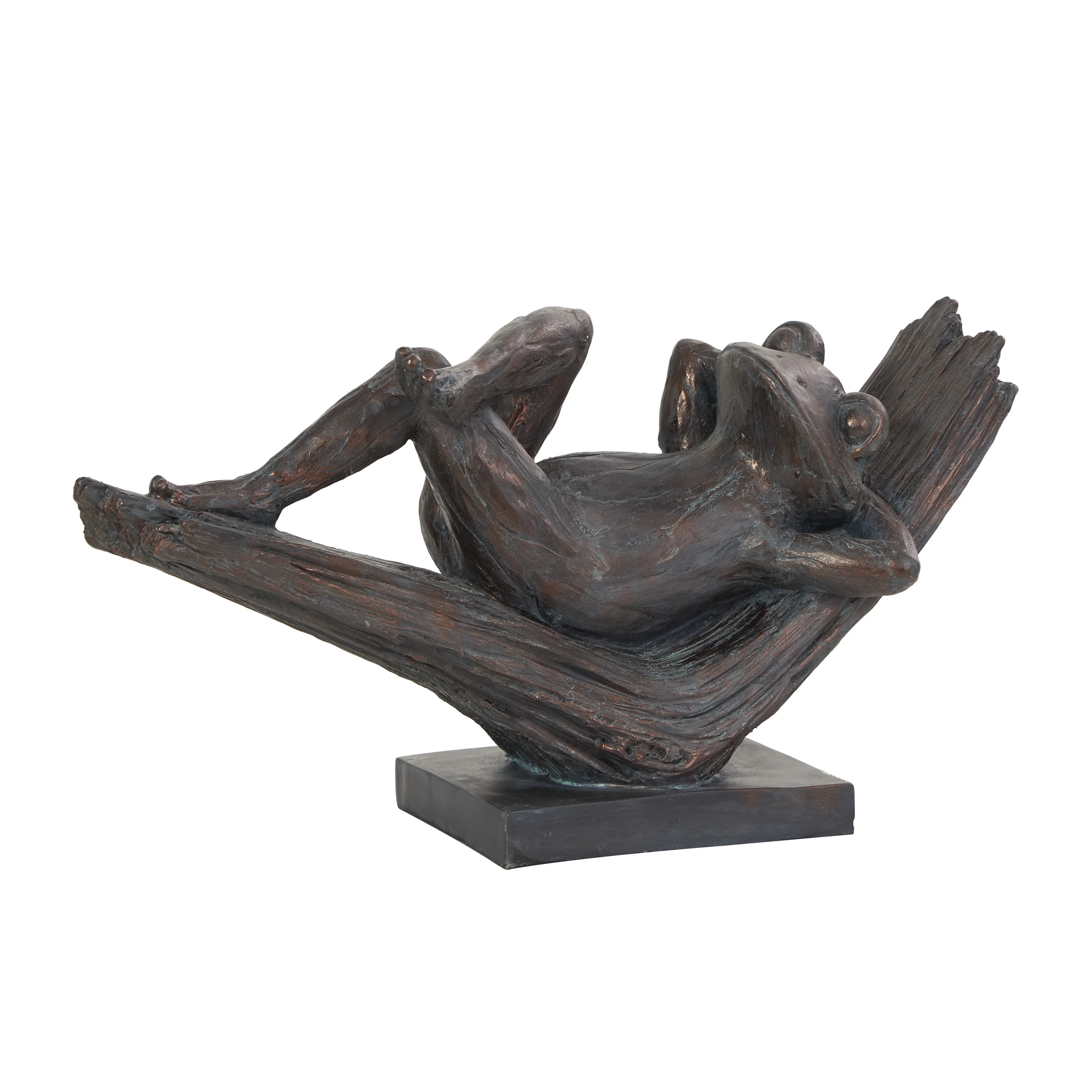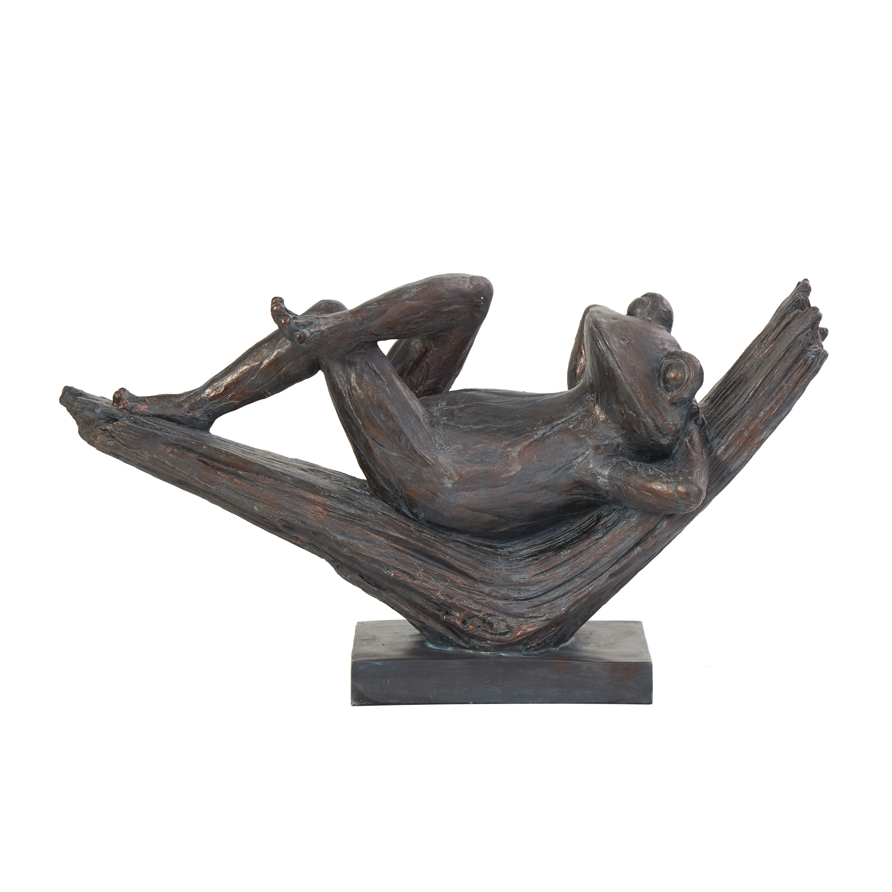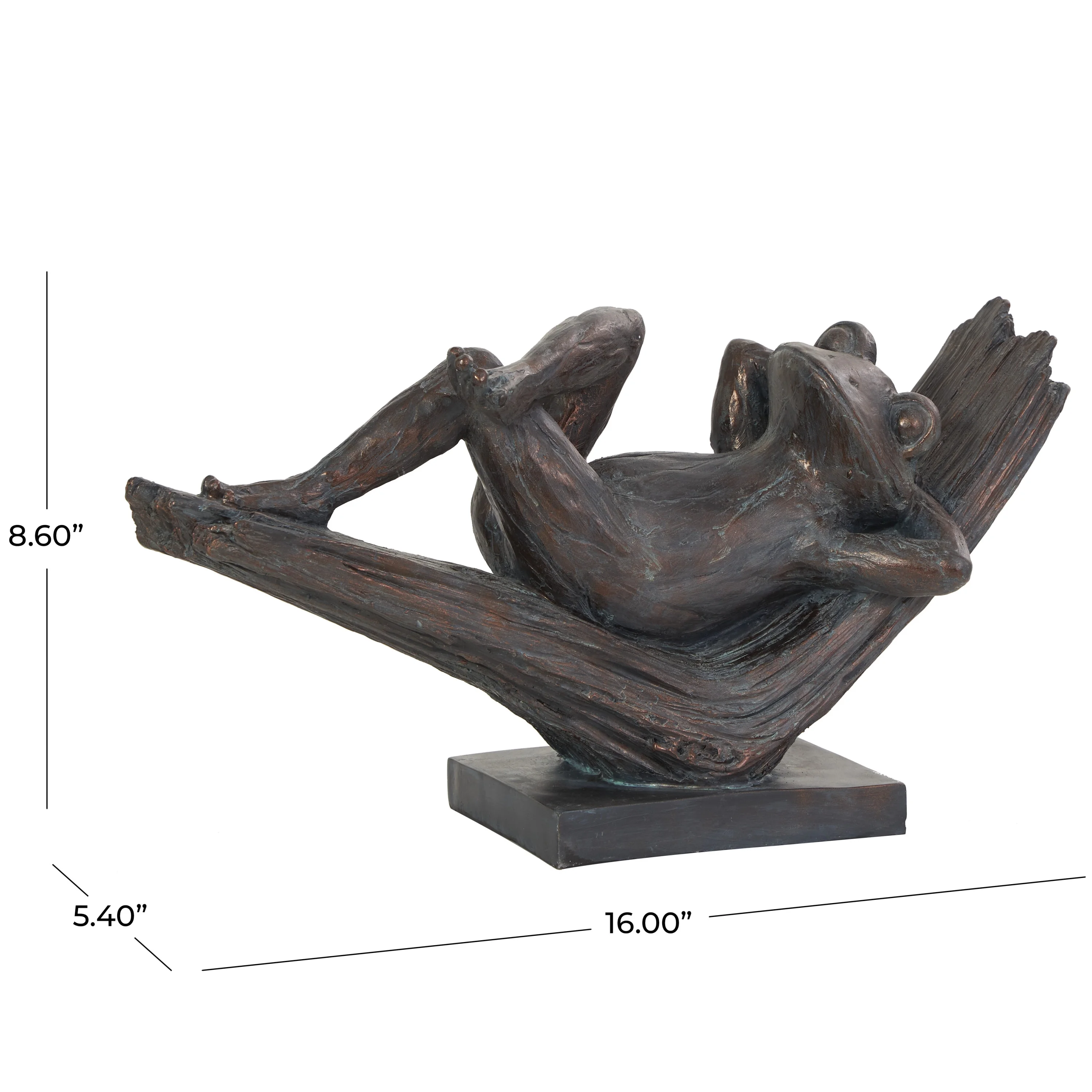 16" x 9" Bronze Resin Patina Relaxing Frog Sculpture, by DecMode - Curated Treasures Market