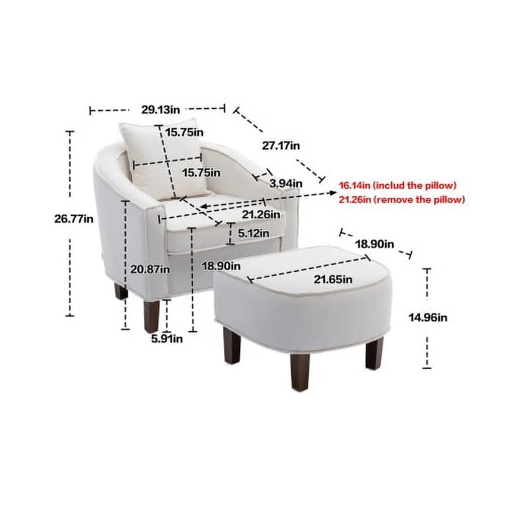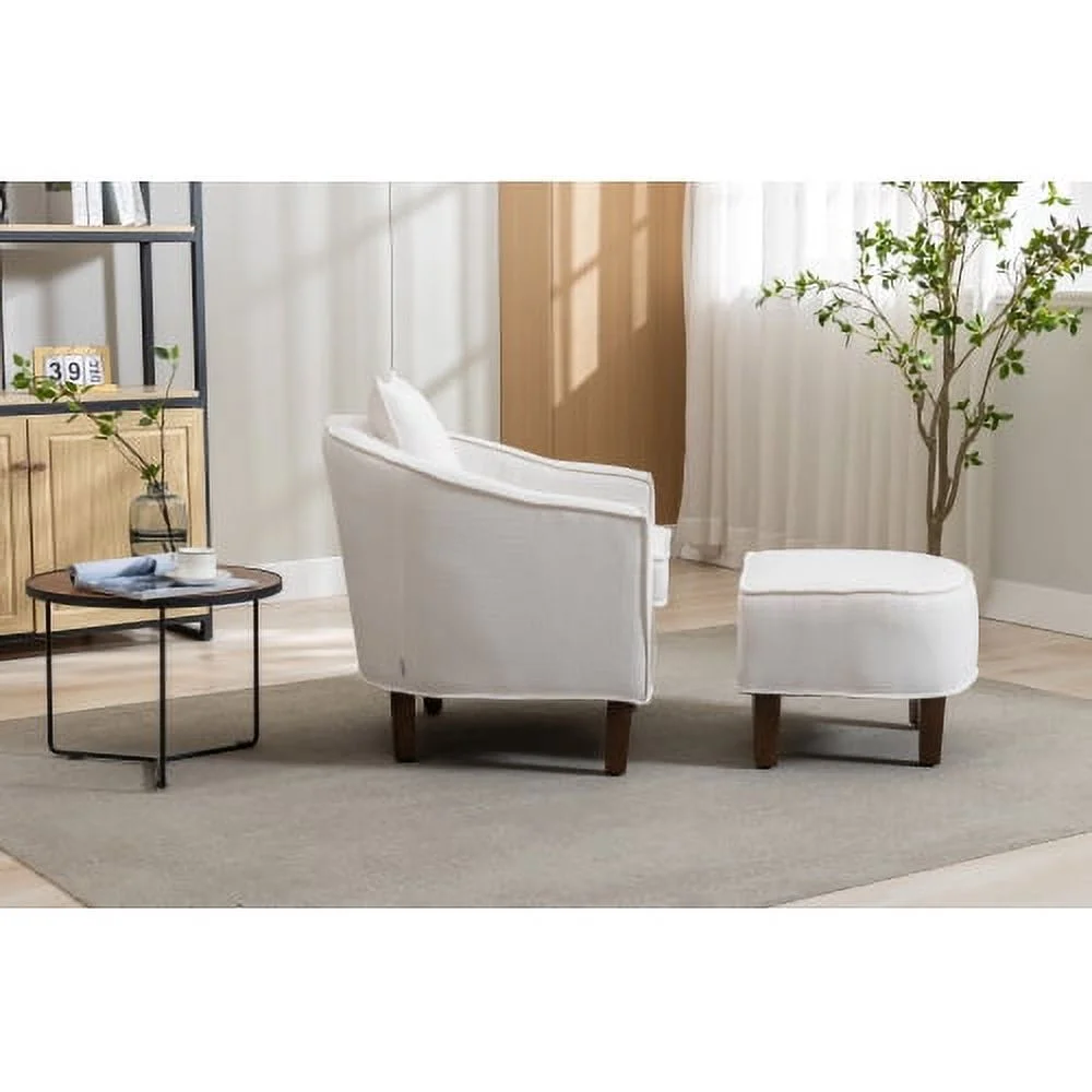 JHOOTUUO COOLMORE Accent Chair with Ottoman Mid Century Modern Barrel Chair Upholstered Club Tub Round Arms Chair for Living Room - Curated Treasures Market