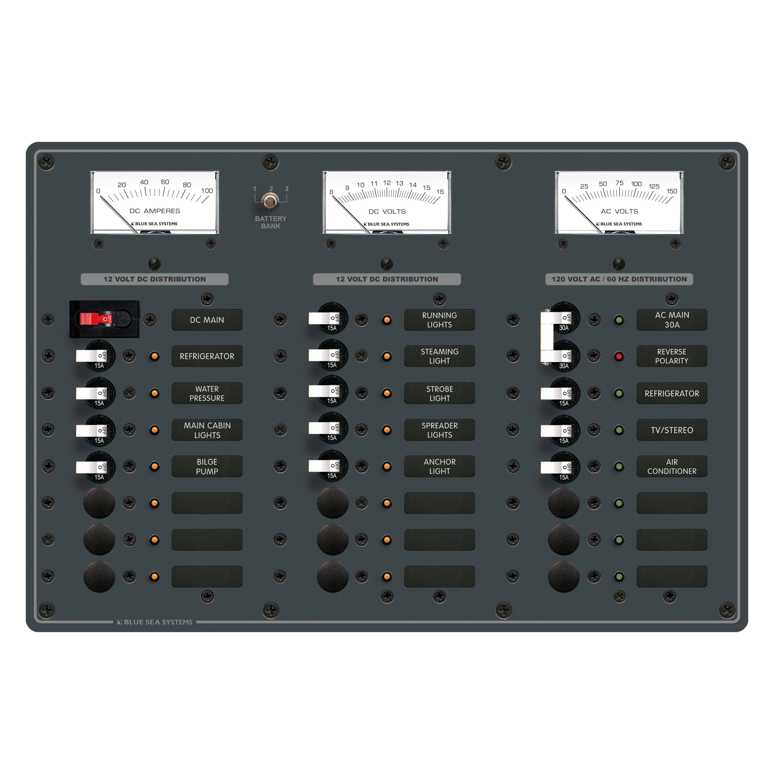Blue Sea 8084 AC Main +6 Positions/DC Main +15 Positions Toggle Circuit Breaker Panel - Megean