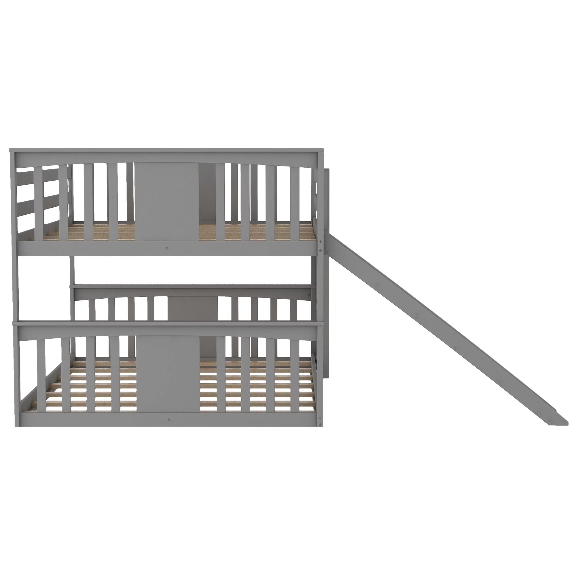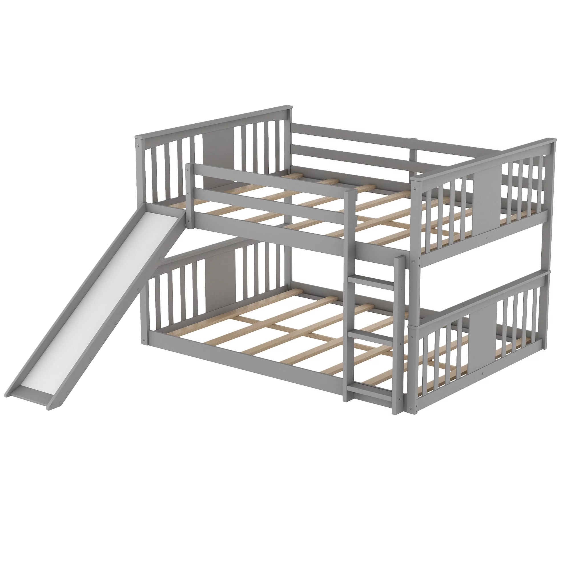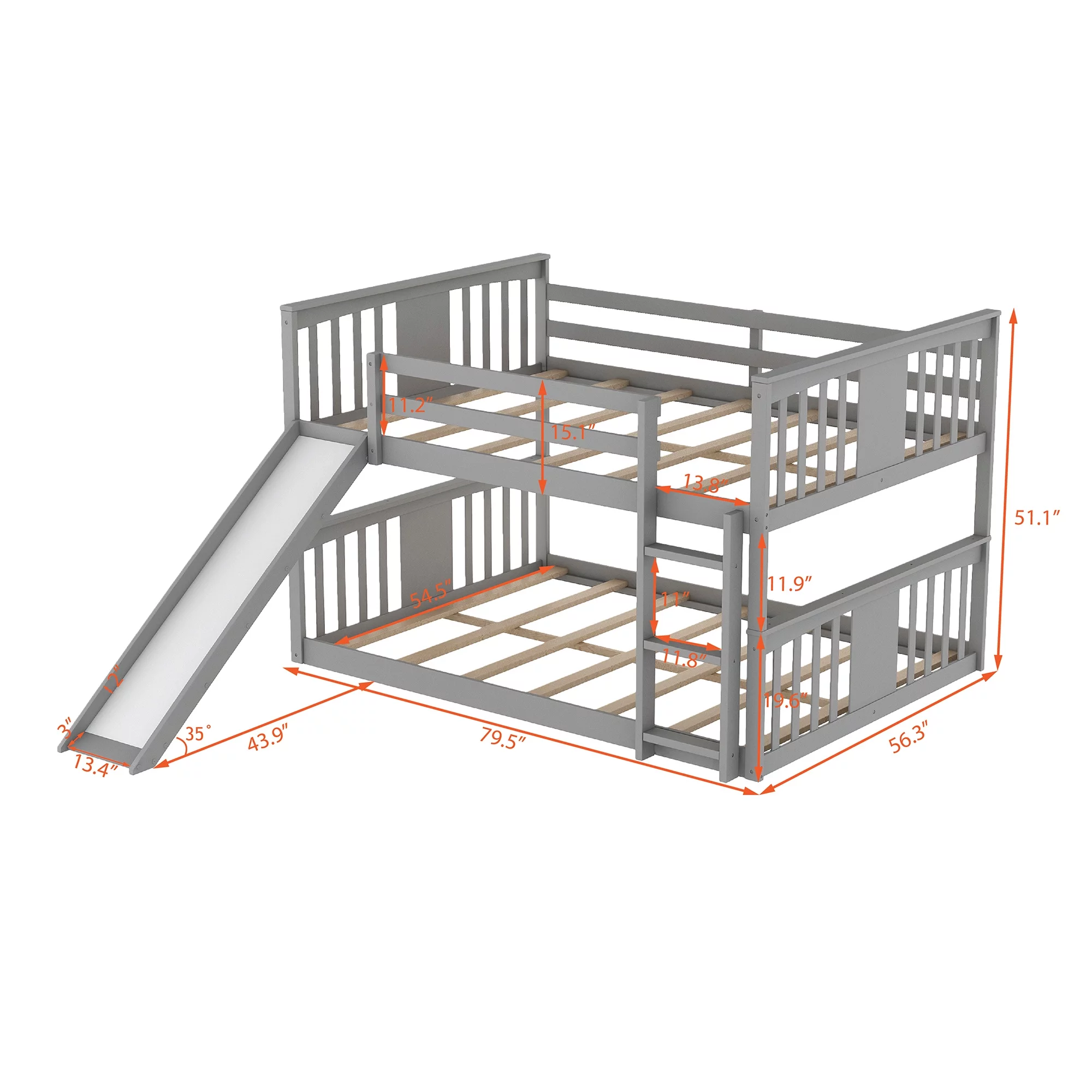 CHURANTY Full Over Full Bunk Bed Frame with Slide and Built-in Ladder, Wood Low Bunk Bed for Teens and Adults, Bedroom Furniture, No Spring Box Needed - Curated Treasures Market