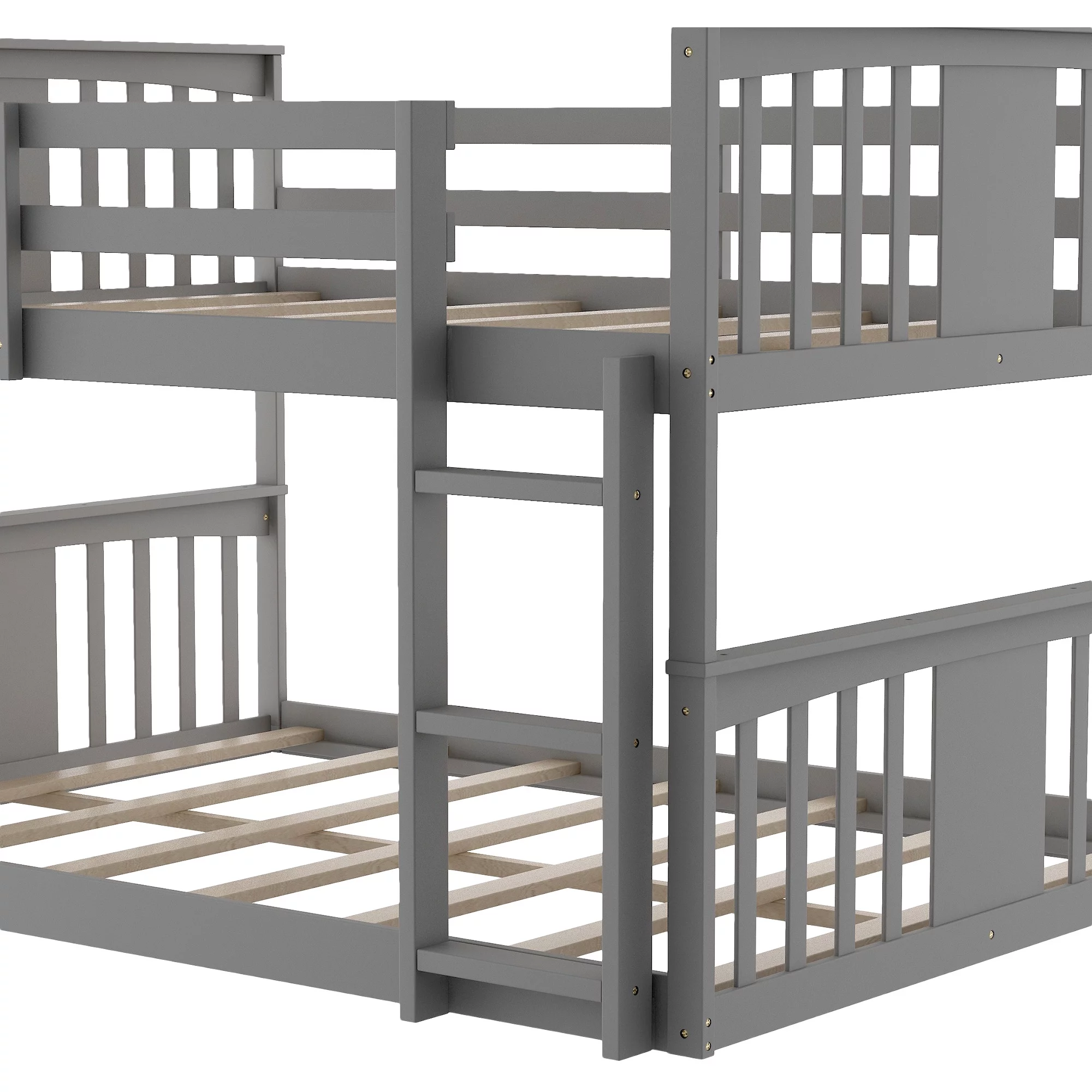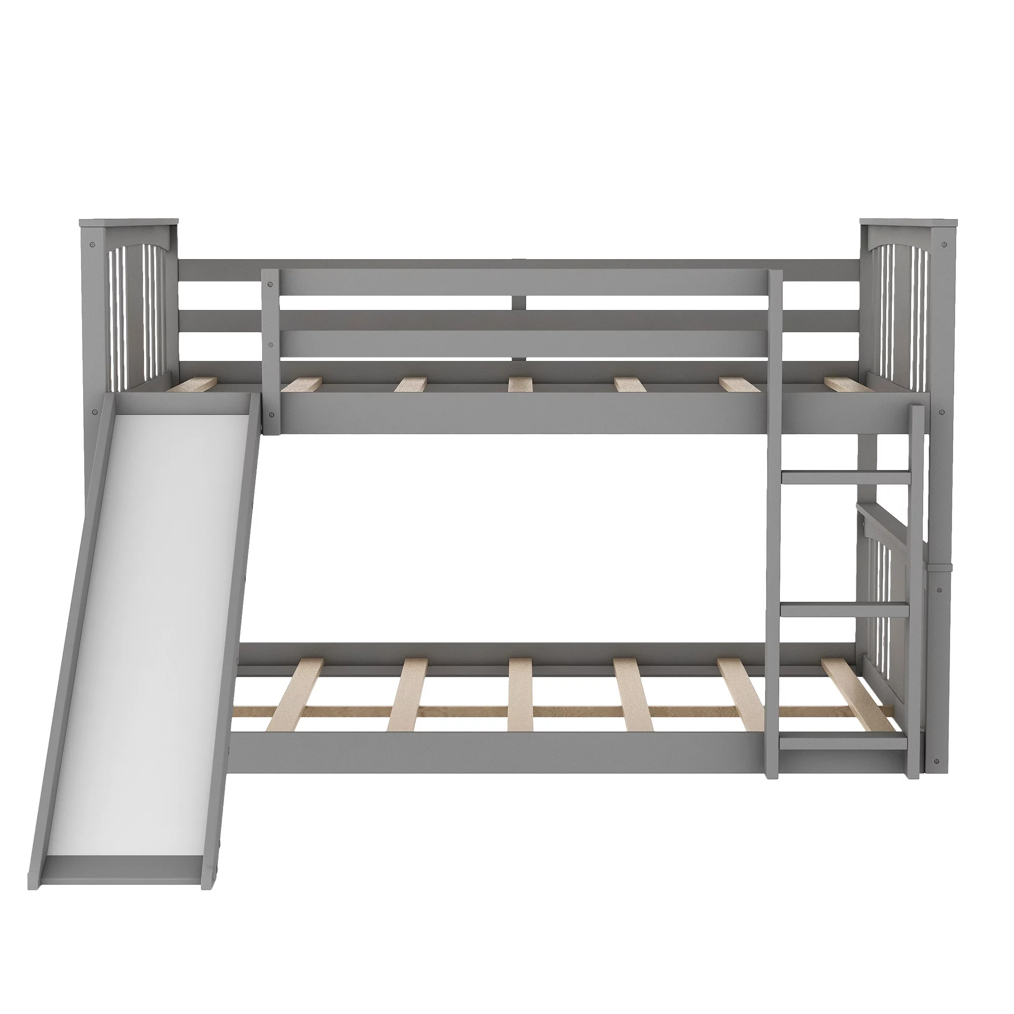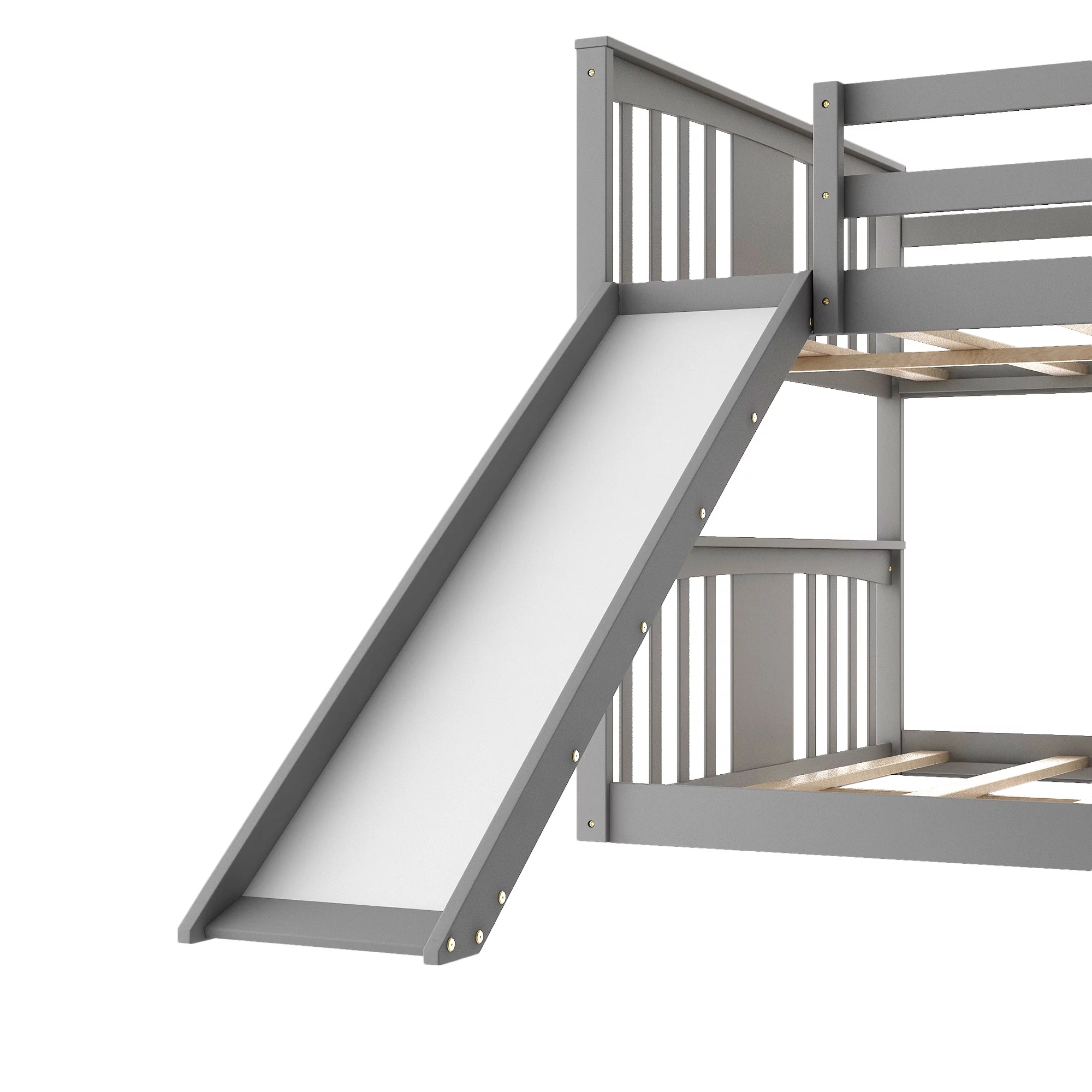 CHURANTY Full Over Full Bunk Bed Frame with Slide and Built-in Ladder, Wood Low Bunk Bed for Teens and Adults, Bedroom Furniture, No Spring Box Needed - Curated Treasures Market