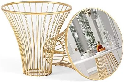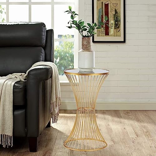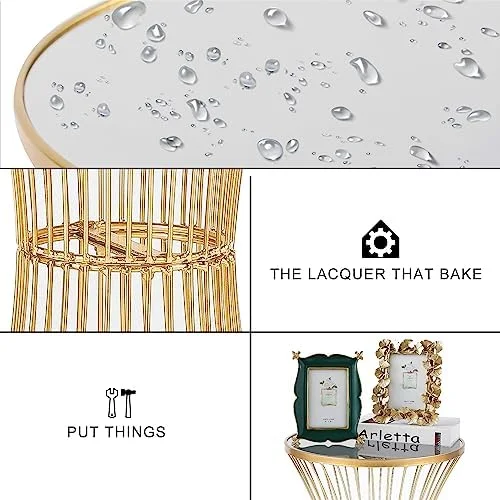 HVSDIMO Round Metal Light Gold Modern End for Small Spaces Small Coffee Bedside Room Bedroom Office - Curated Treasures Market