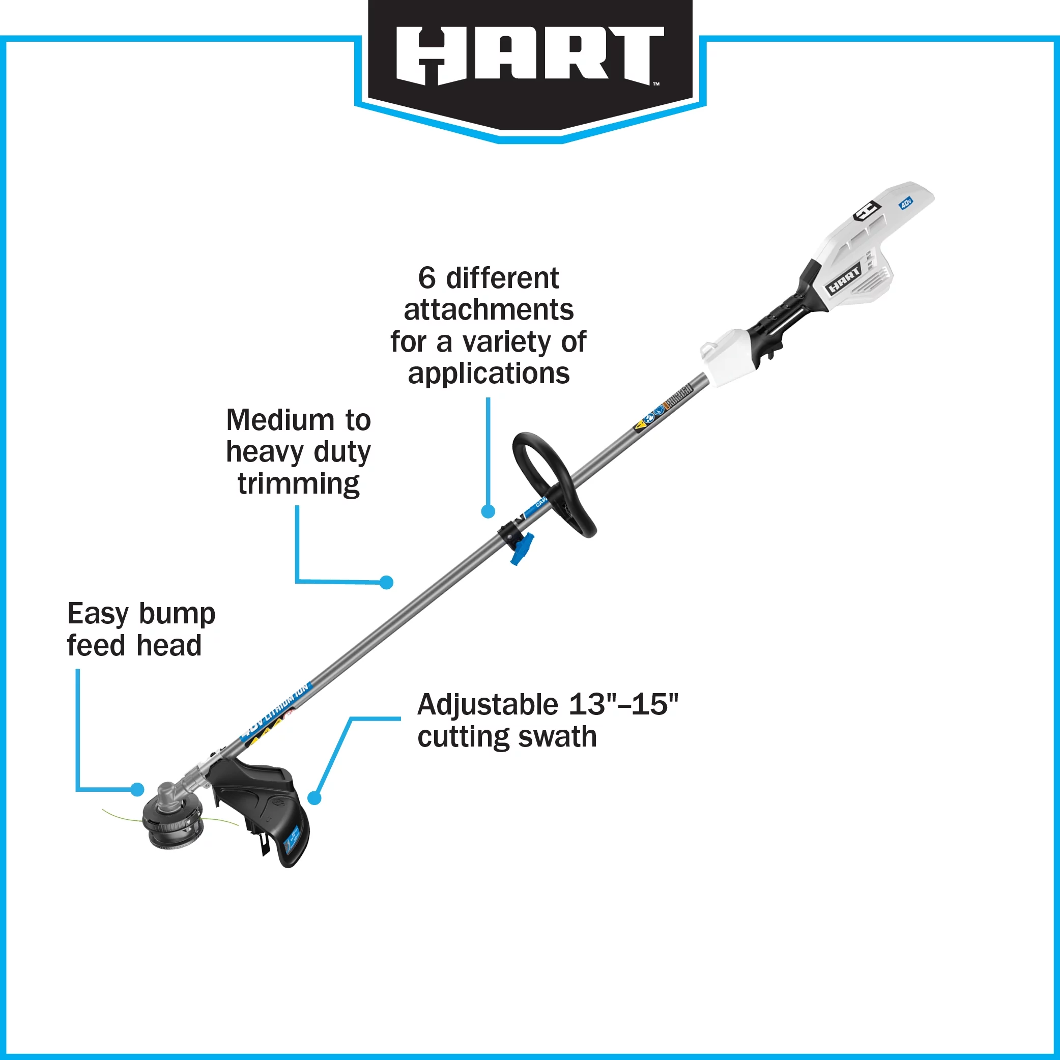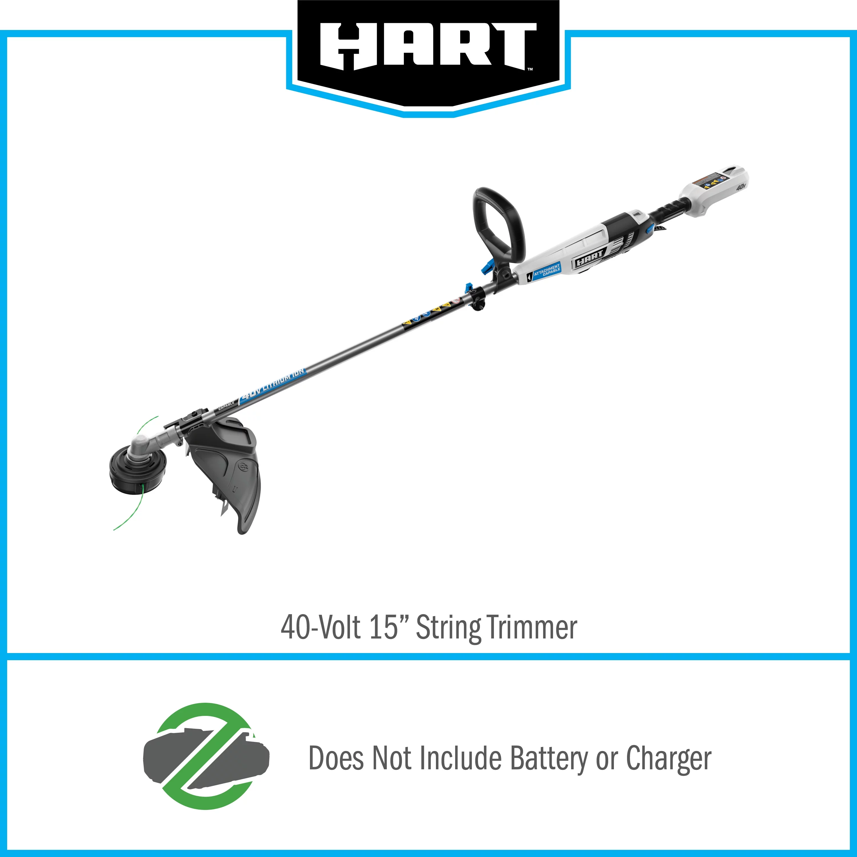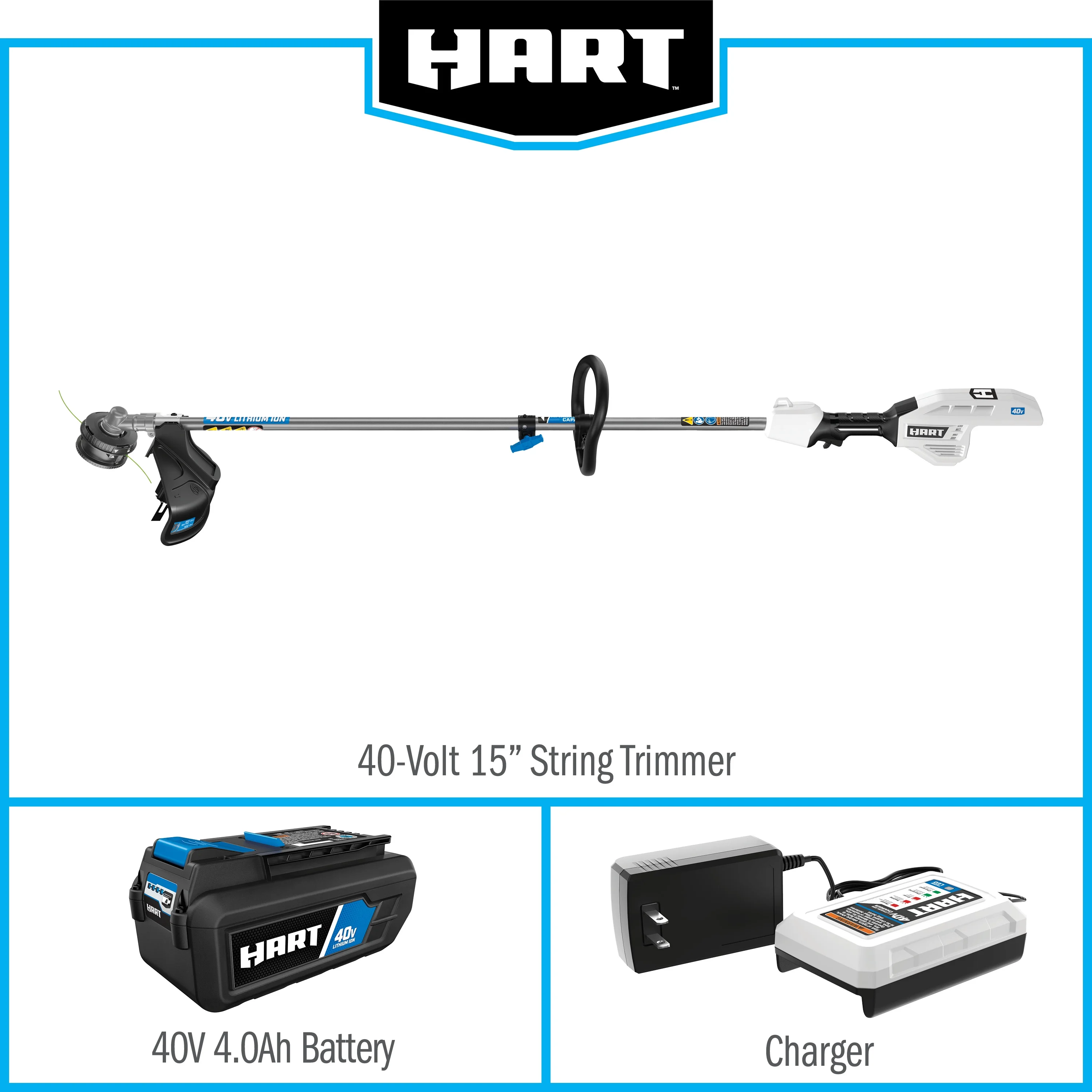 HART 40-Volt Cordless Attachment Capable 15-inch String Trimmer Kit, (1) 4.0Ah Lithium-Ion Battery