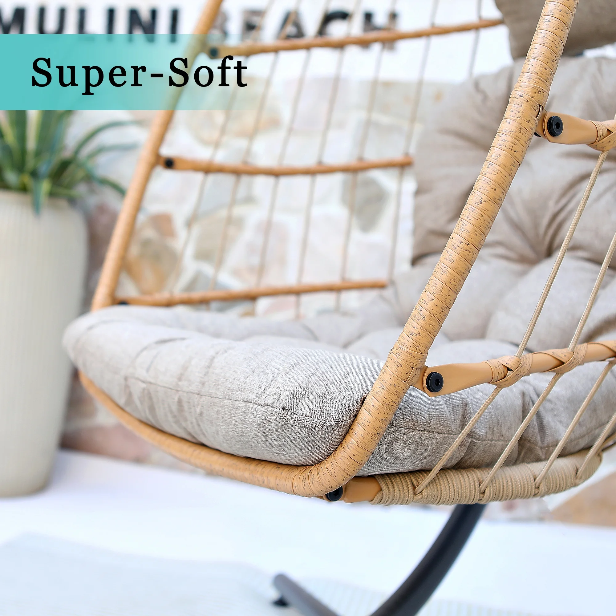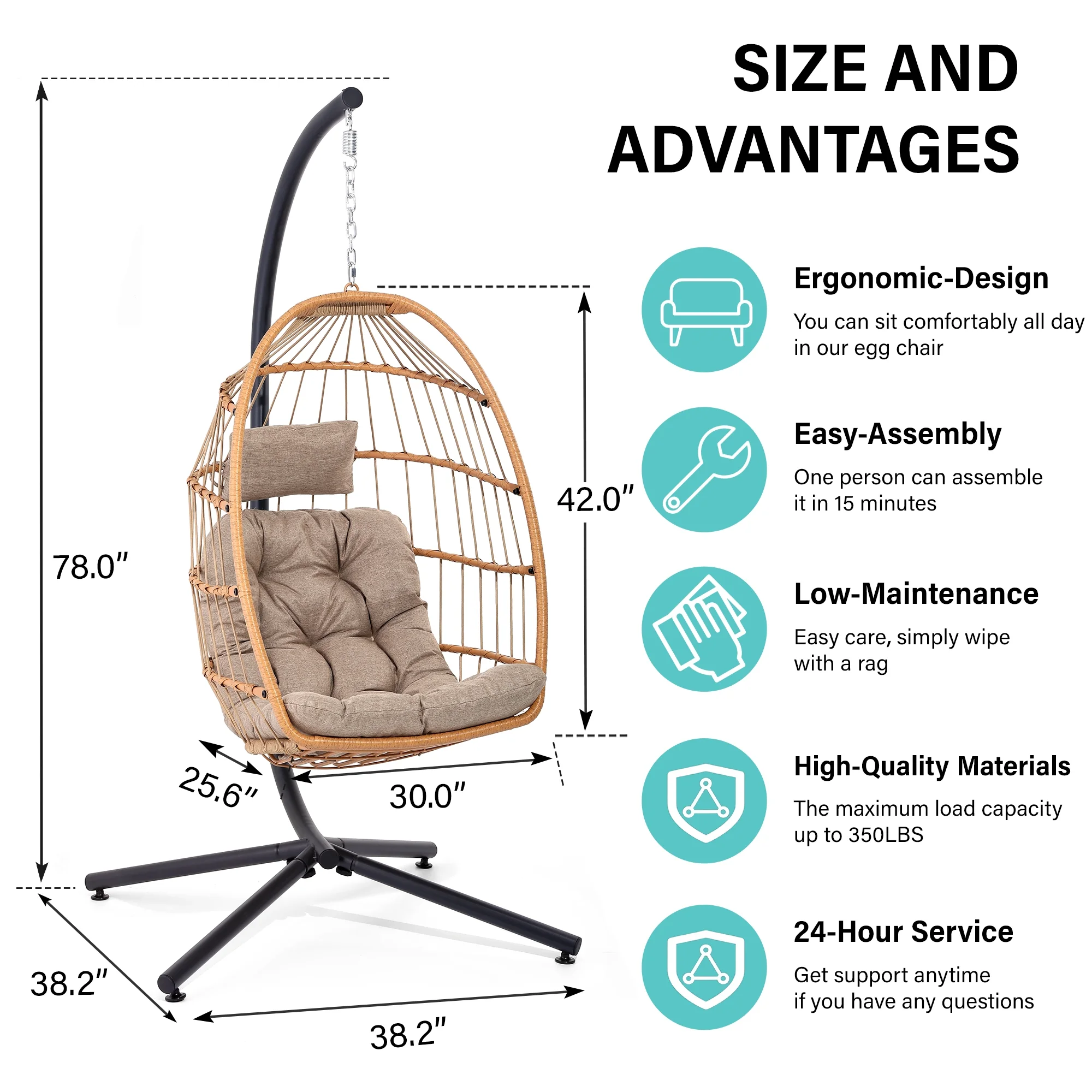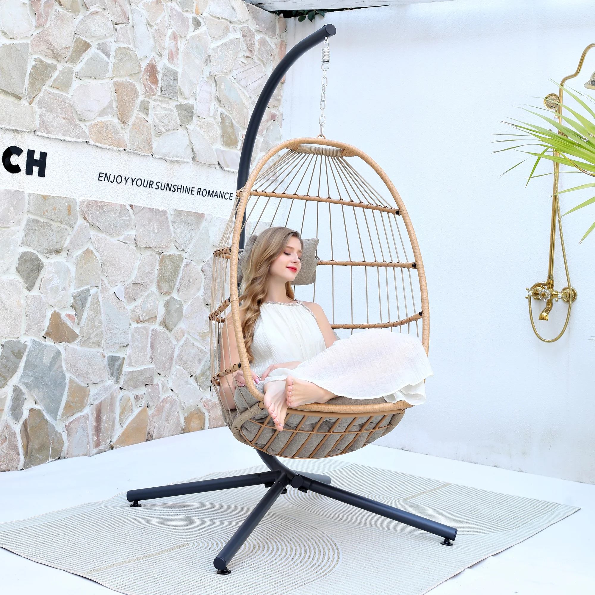 Micleed Swing Egg Chair with Stand Beige Color Hang Chair Indoor & Outdoor Foldable - Curated Treasures Market