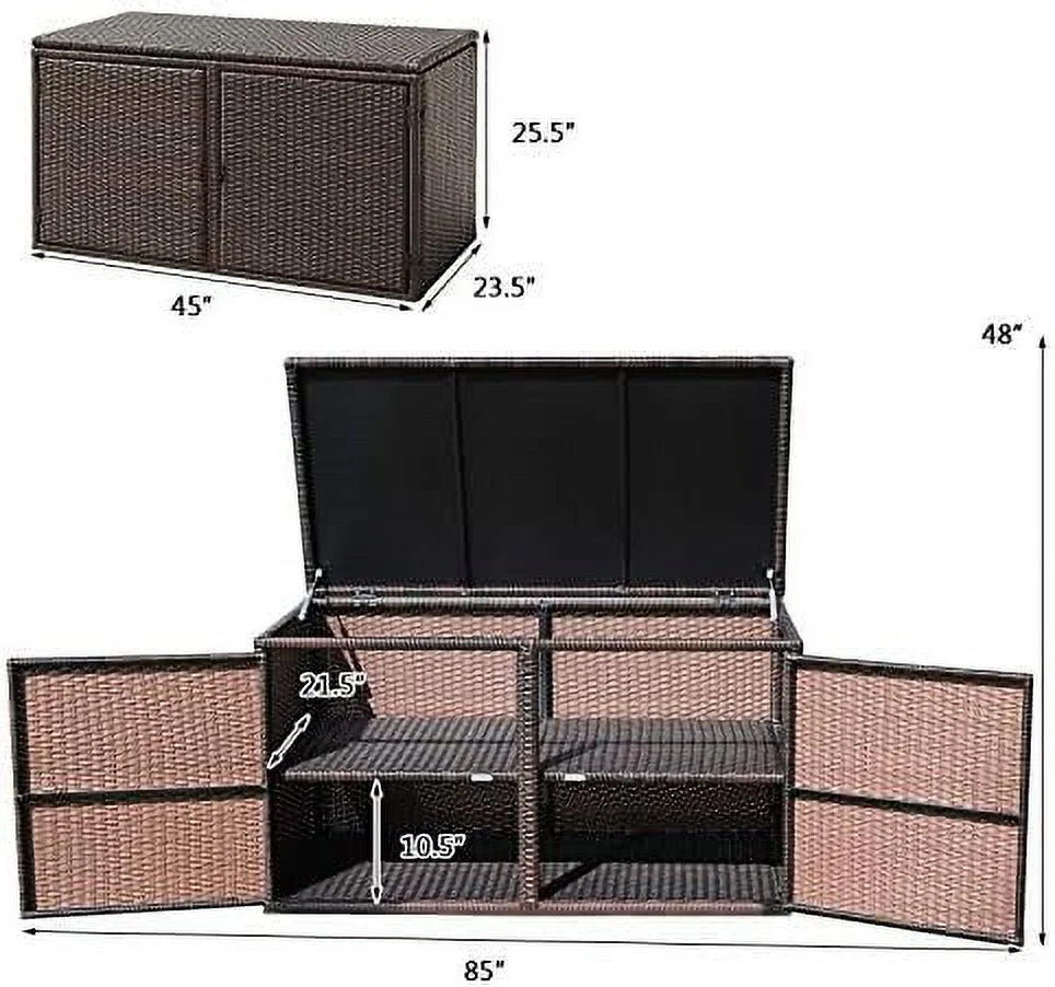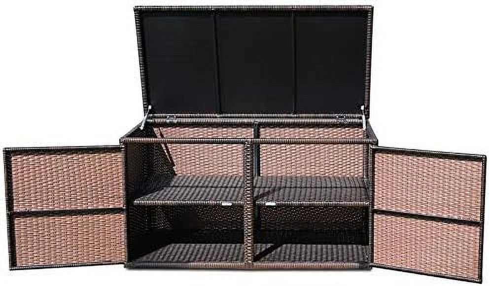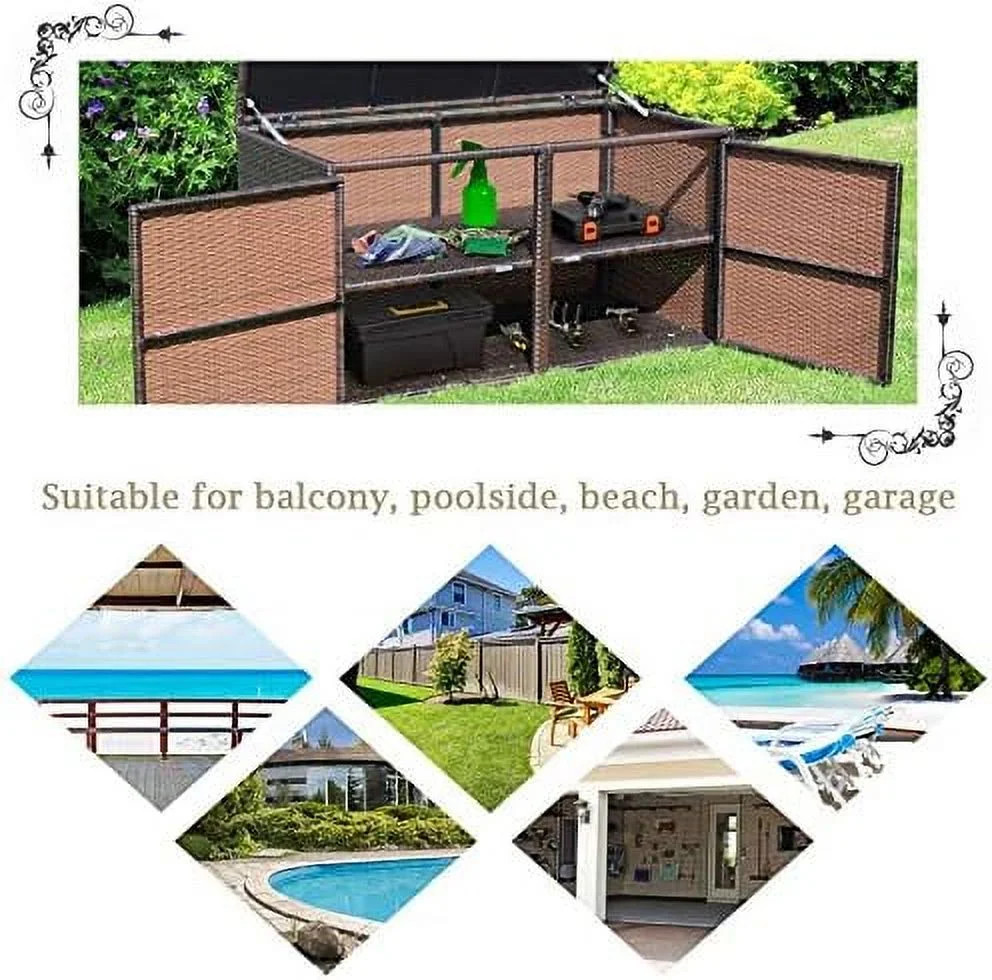 JYHOME Outdoor Wicker Box Garden Deck Bin with Steel Frame Rattan Pool Box with Lid Ideal for Storing Tools Accessories and Toys 88 Gallon Capacity (Black) - Curated Treasures Market
