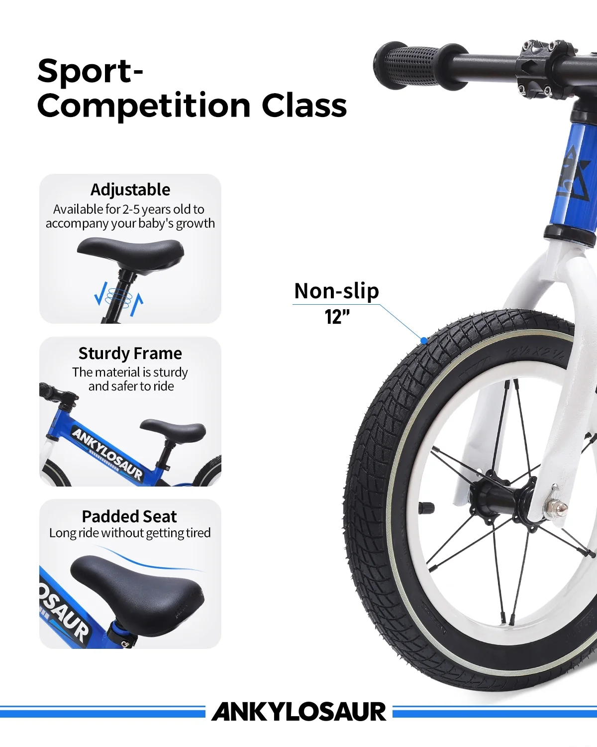 ANKLOSAUR No Pedal Balance Bike, 12 Toddler Bicycle with Adjustable Seat Height Ages 2-5