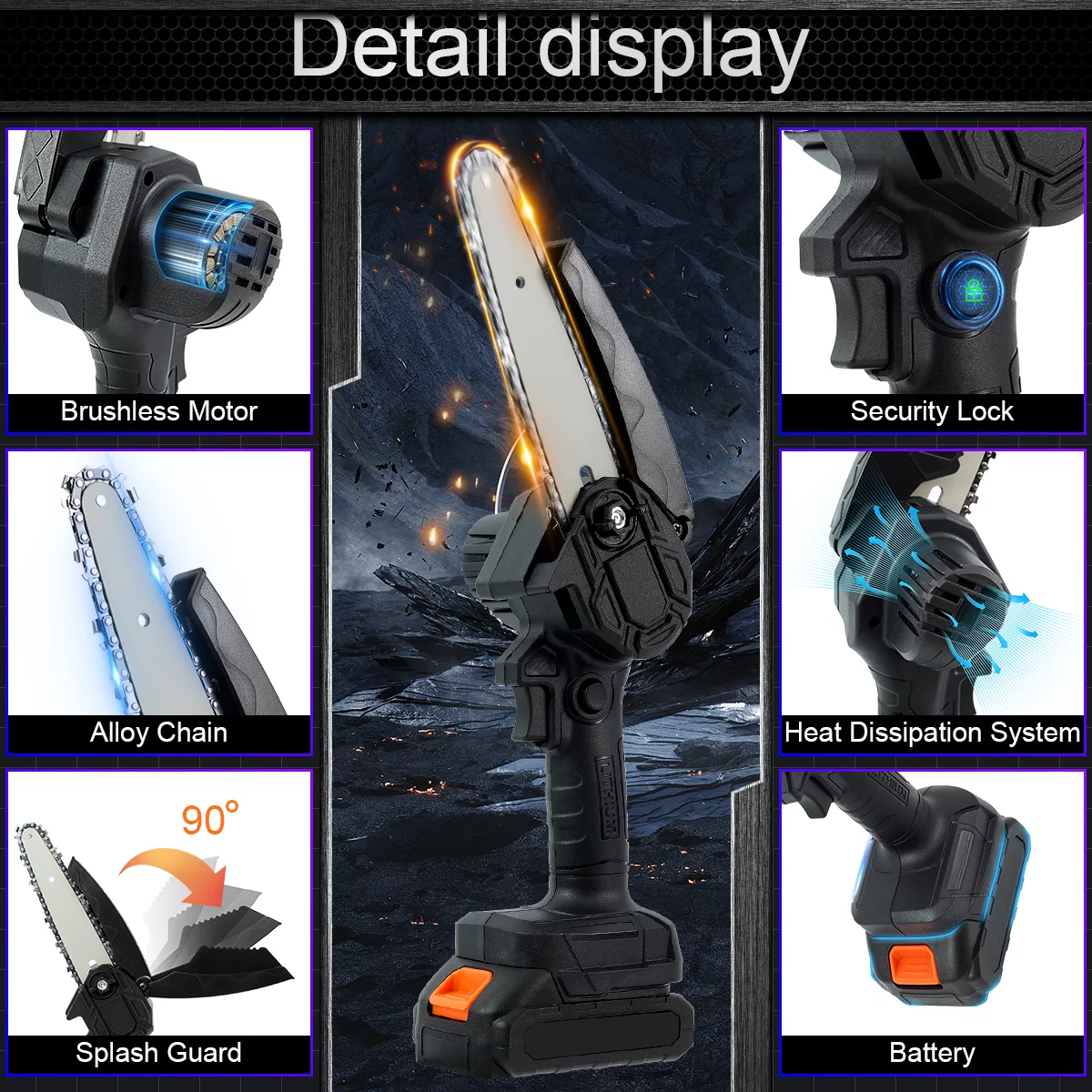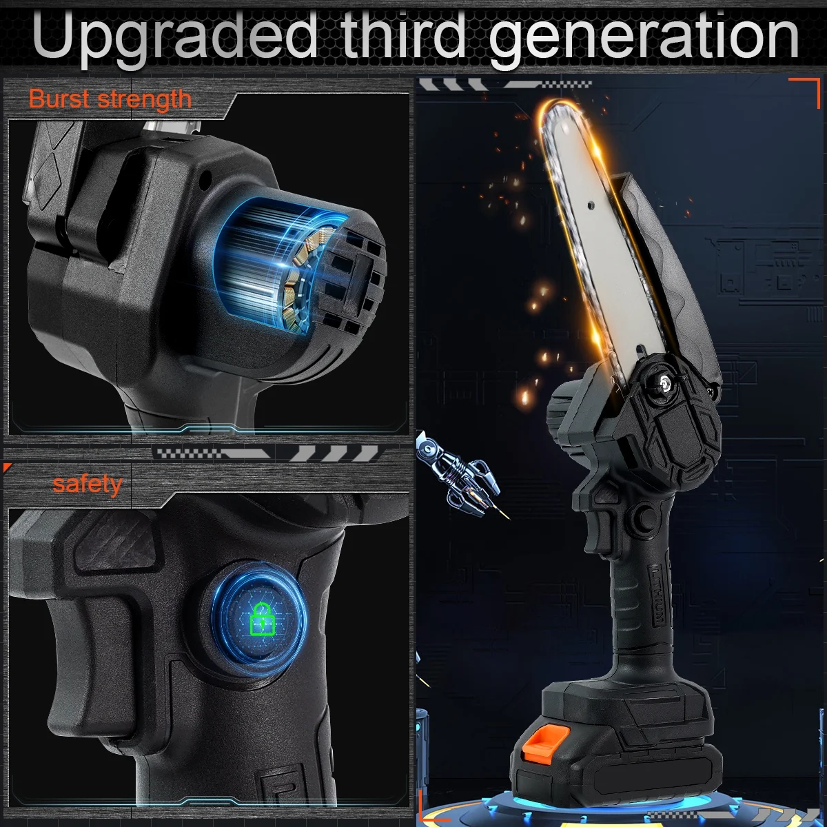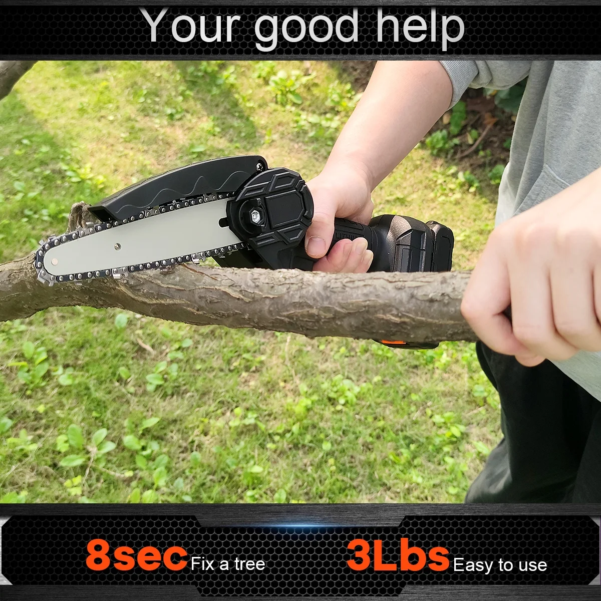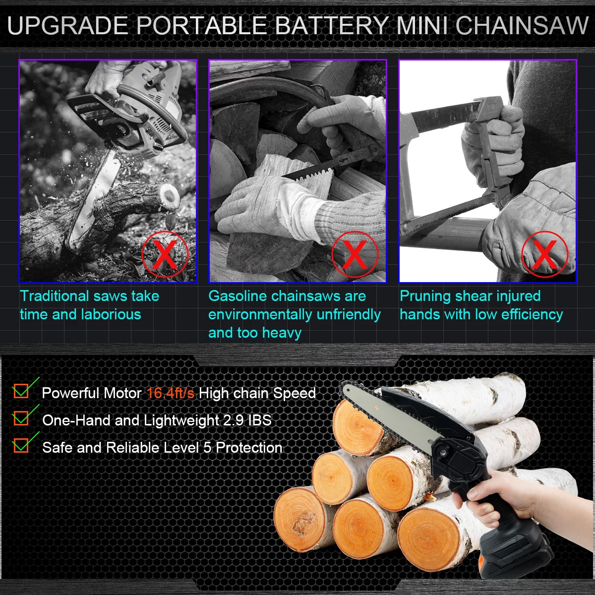 HDJ 6 inch Cordless Mini Chainsaw with 2PCS Batteries,Electric Chainsaw Portable One-Hand for Wood Cutting Tree Branch Trimming