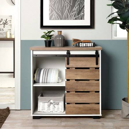 Furniturer 32.3'' Sliding Slat Barn Door Accent Cabinet White/Rustic Wood, Size: 32.3 x 16.1 x 32.3 Freesia - Avayadevconnect