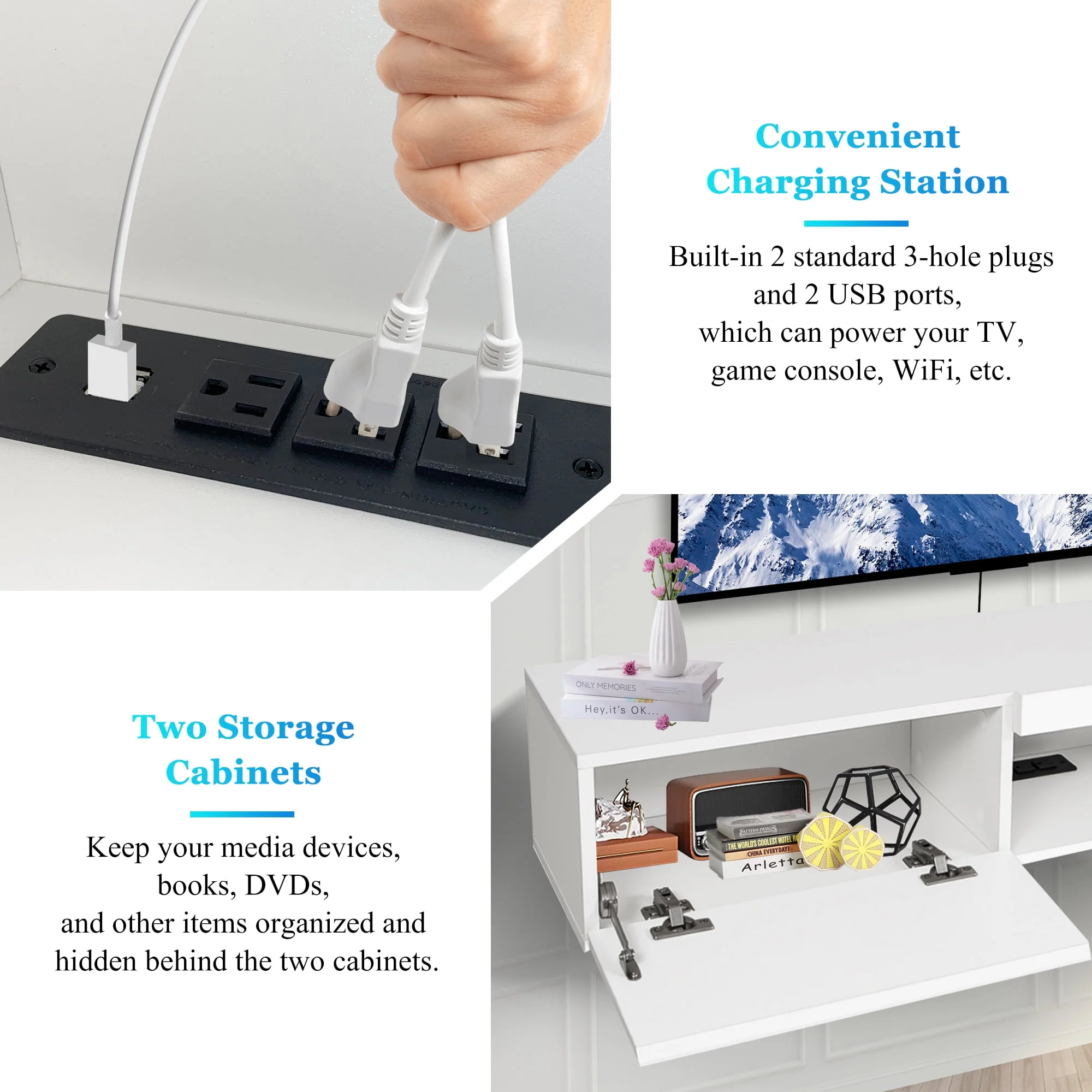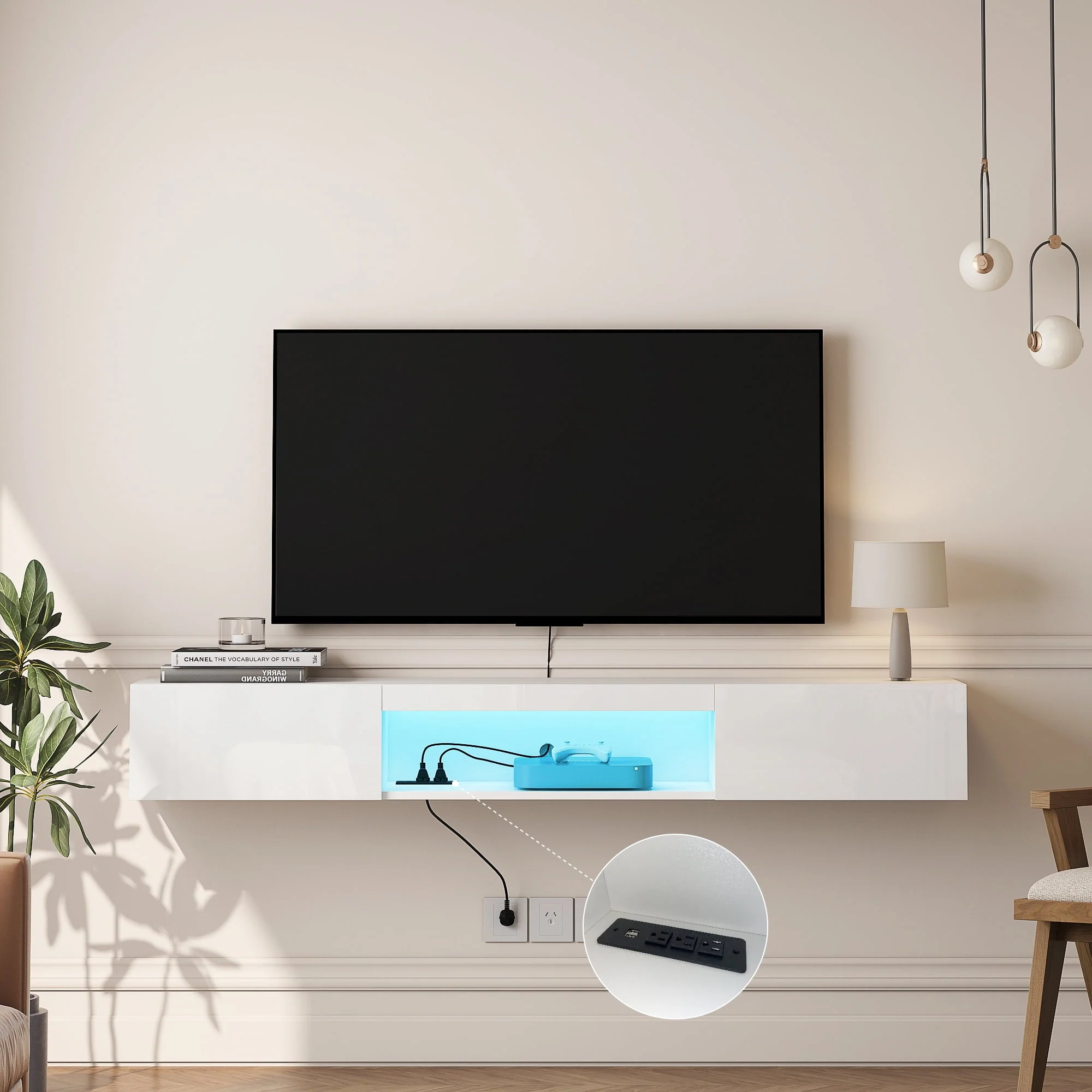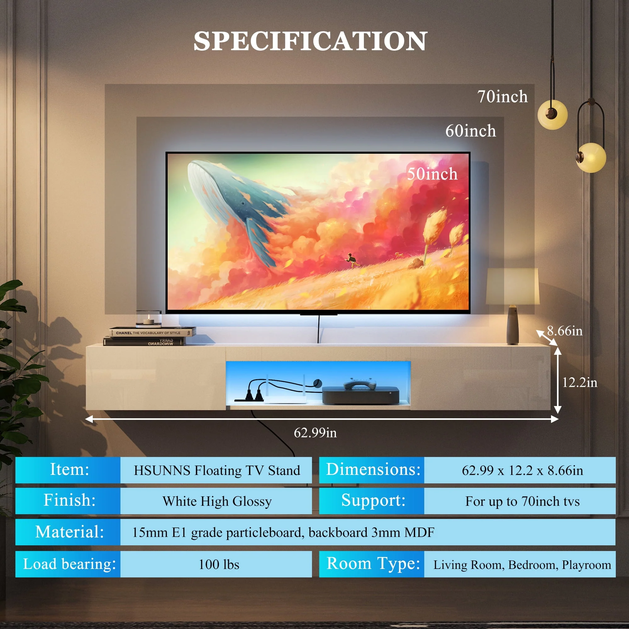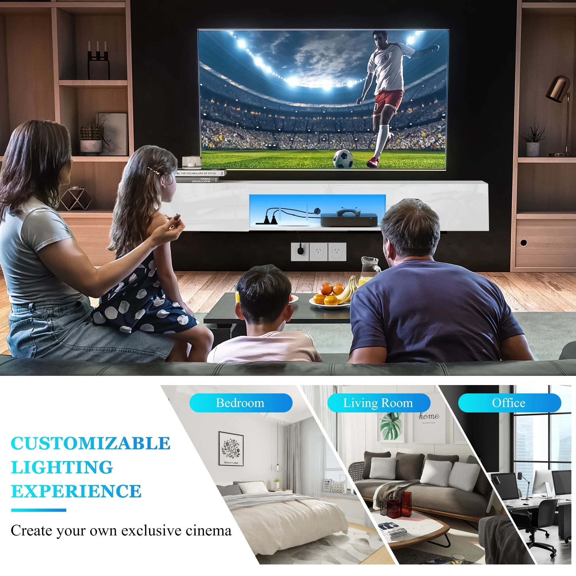 Floating TV Stand for 80 inch TVs, Paproos 71in Long LED Floating TV Cabinet, High Gloss Floating Entertainment Center with APP/Remote Control, Media Console Cabinet Living Room, Black