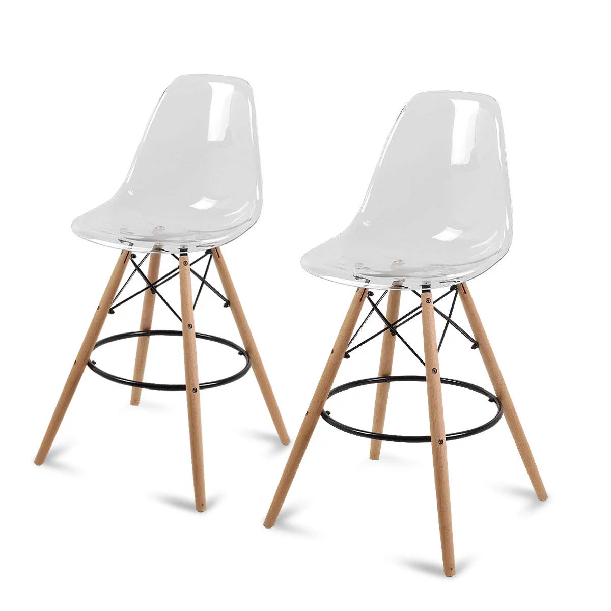 Set of 2 Counter Height High Island Stool Patio Dining Bar Pub Chairs, Clear - Curated Treasures Market