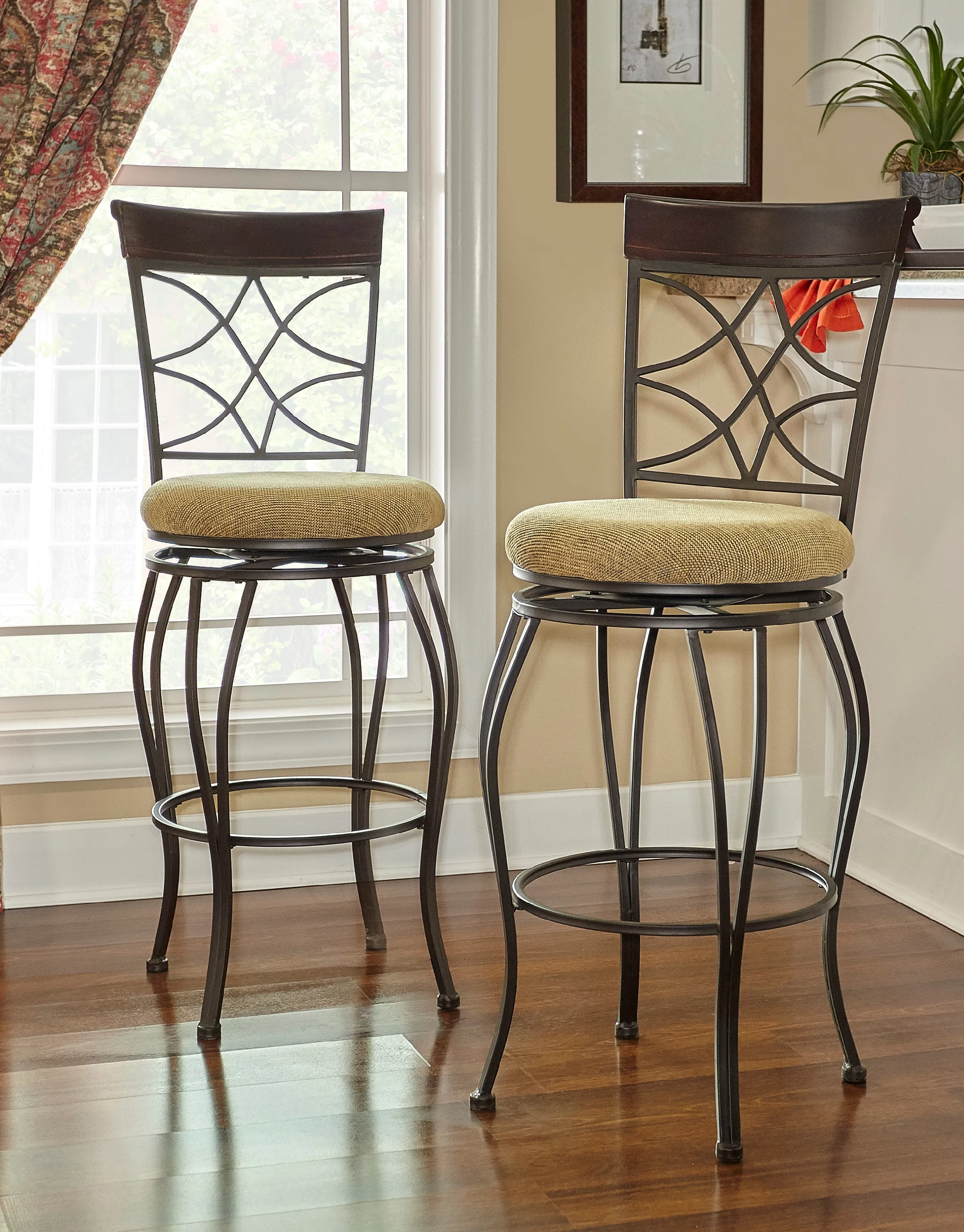 Linon Bryson 30" Indoor Metal Bar Stool with Swivel, Brown/Light Brown Fabric - Curated Treasures Market