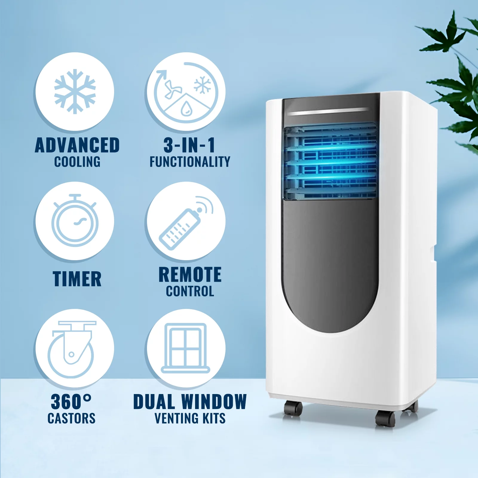 WANAI 8000 Btu Portable Air Conditioner, Built-in Dehumidifier & Fan Mode Cools up to 250 Sq.ft
