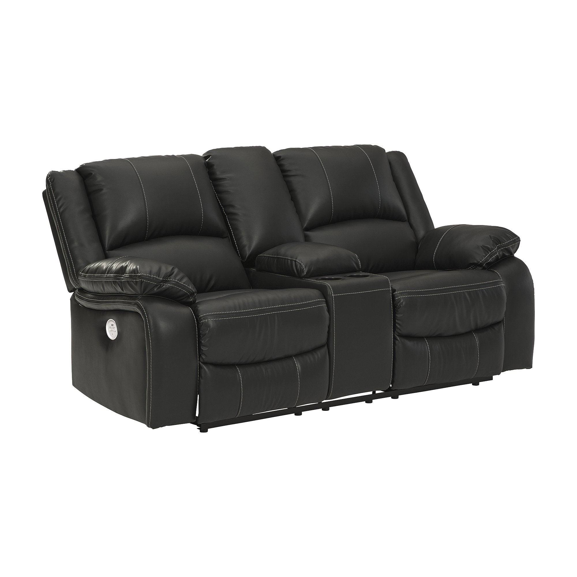 Signature Design by Ashley Calderwell Black Power Reclining Loveseat with Console - Megean
