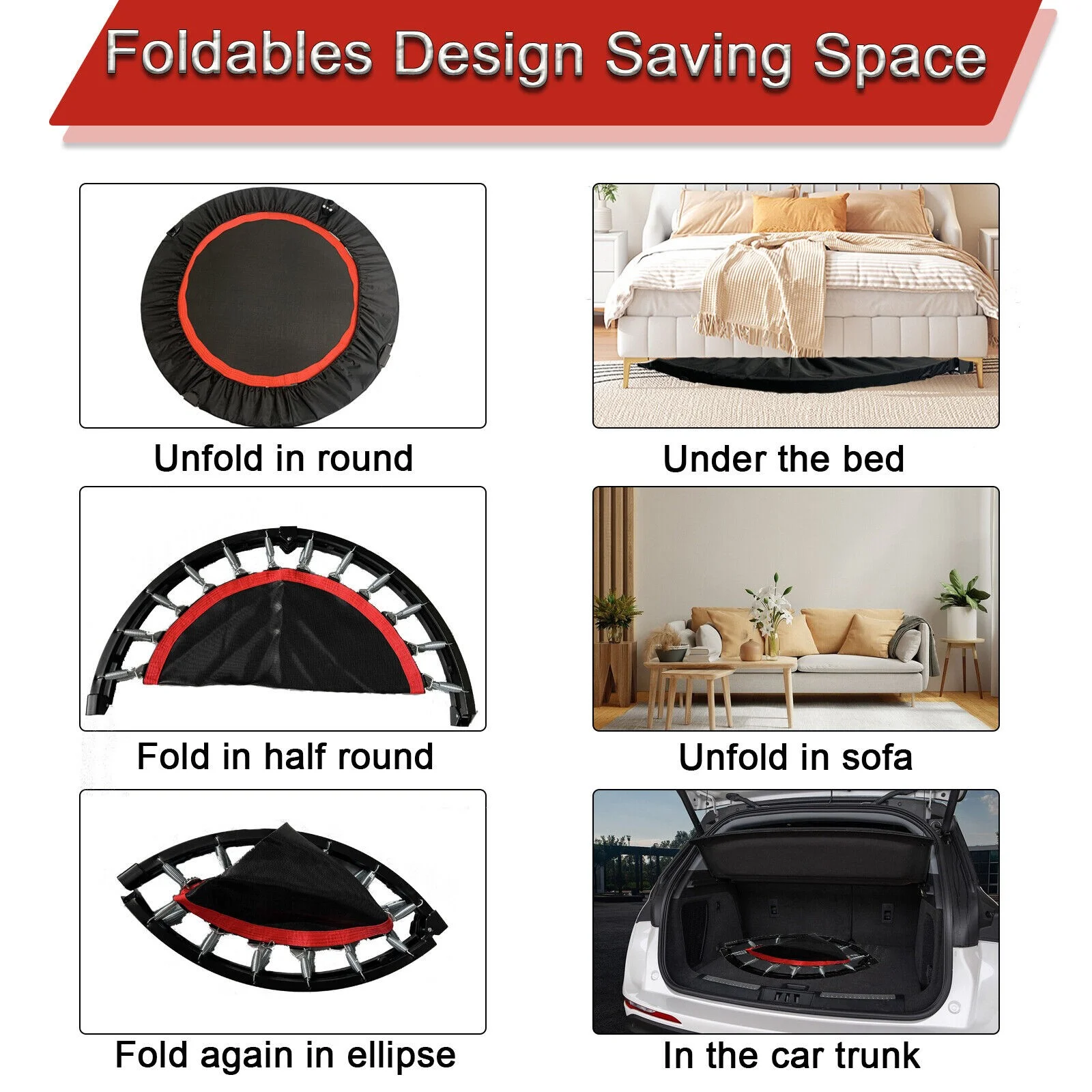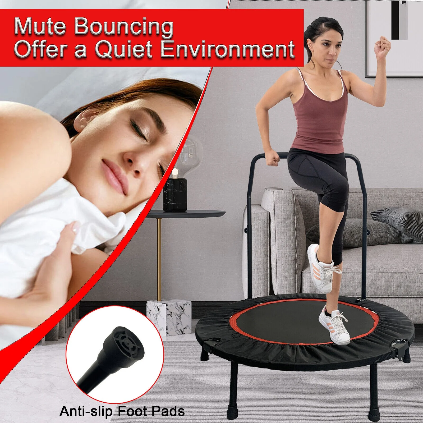 PRIJESSE 660lbs Mini Trampoline for Adults, Indoor Small Rebounder Exercise Trampoline for Workout Fitness for Quiet and Safely Cushioned Bounce, 40 Inch