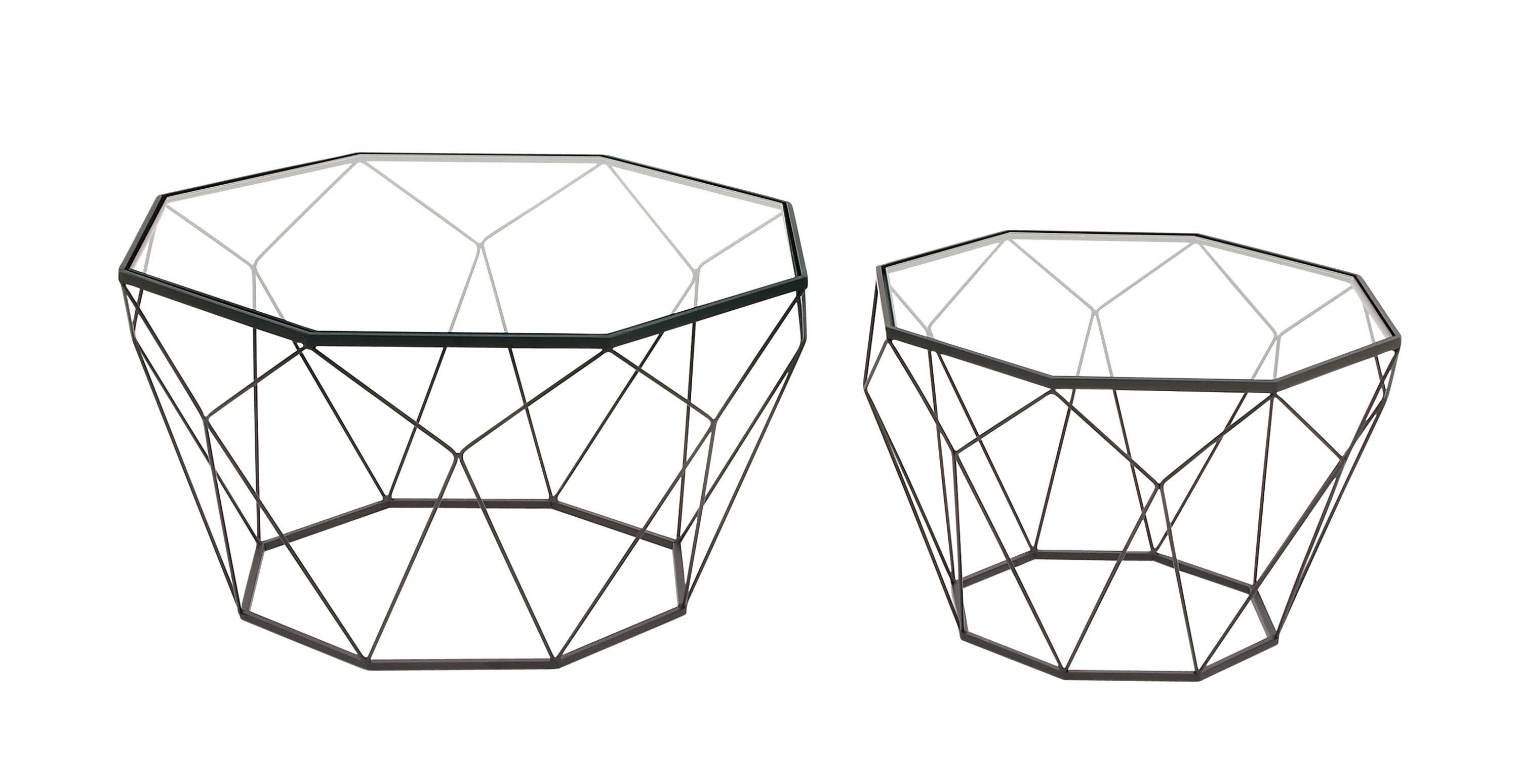 Benzara Elegant Metal Glass Accent Table (Set of 2) - Megean
