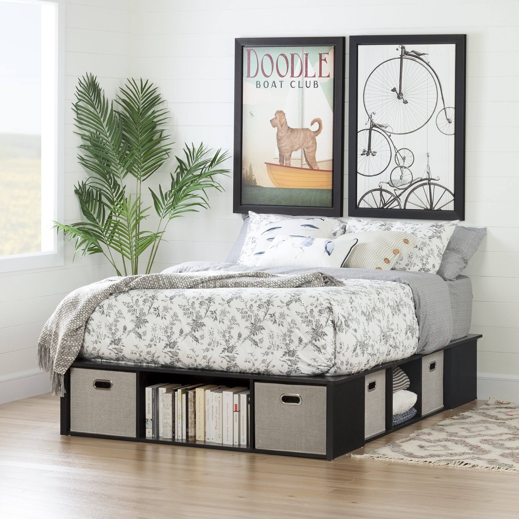 South Shore Flexible Full Platform Bed with Storage and Baskets, Black Oak - Megean