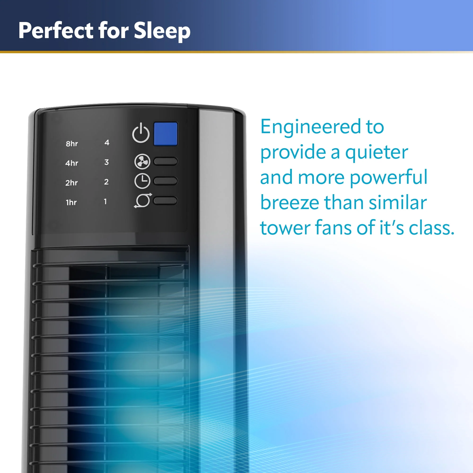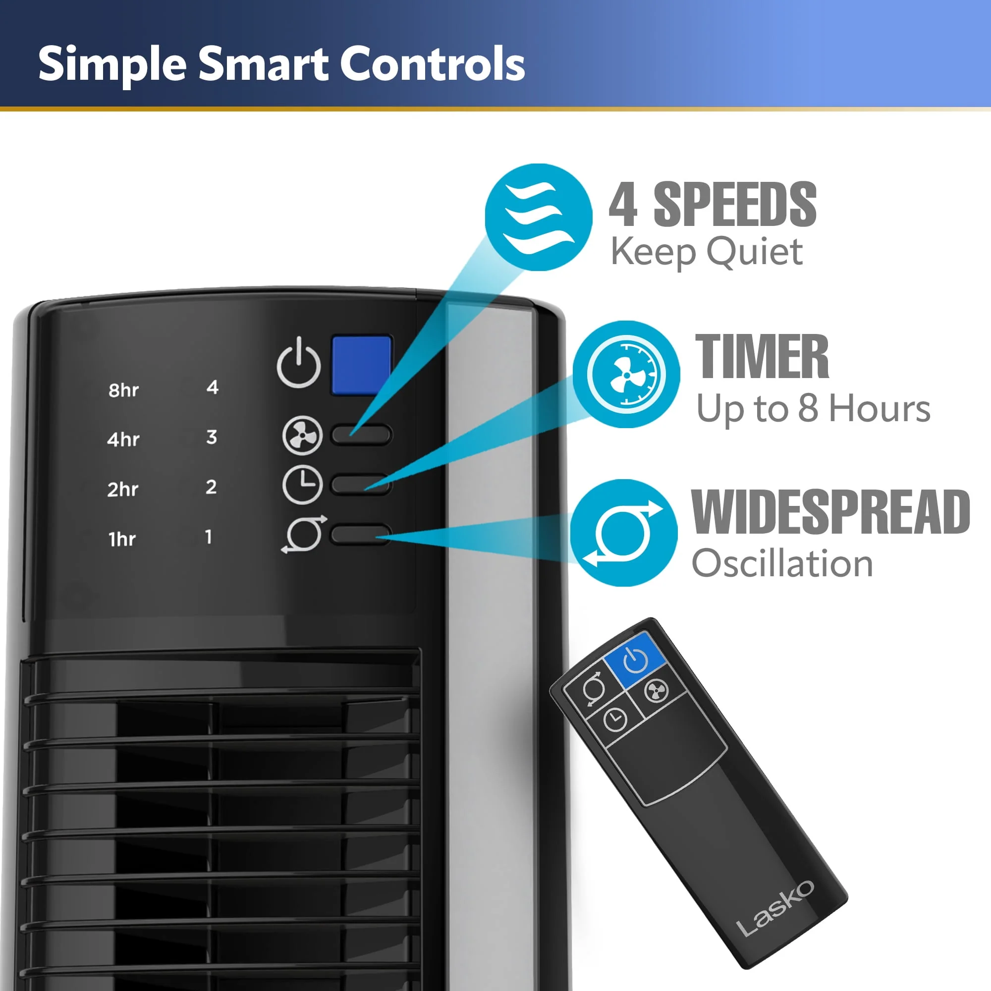 Lasko 38 4-Speed Hybrid Tower Fan with Timer, Remote Control, Black/Silver, T38415, New