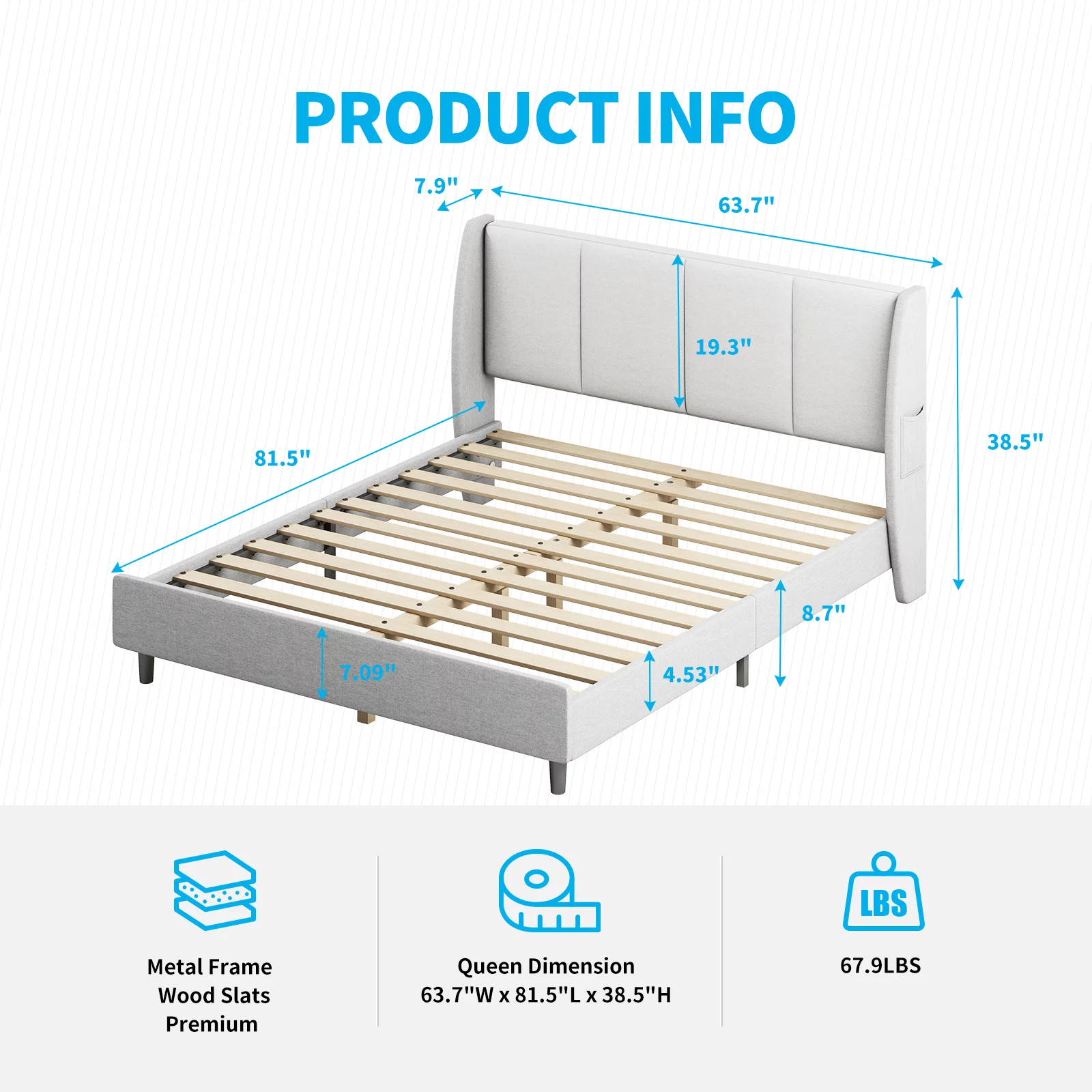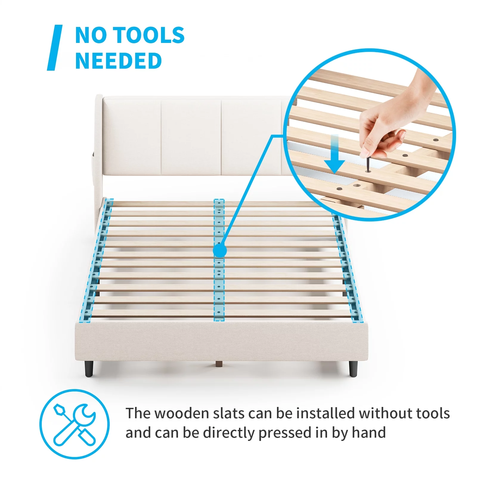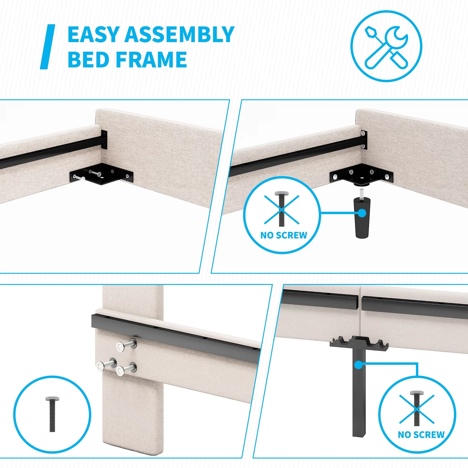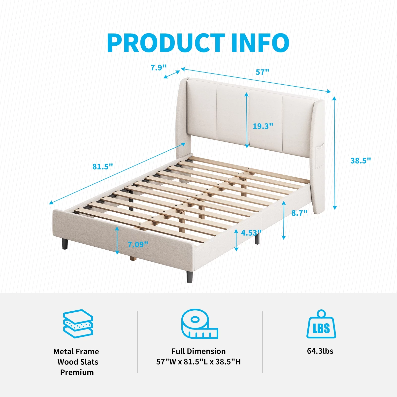 Muzz Platform Bed Frame, Full Size Modern Bed Frames with 2 Large Side Pockets, Bed Frame No Box Spring Needed/Easy Assembly/No Mattress (Full, Beige)