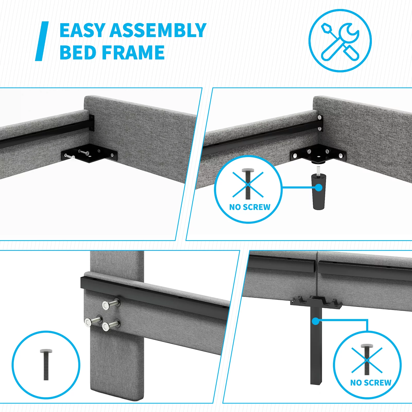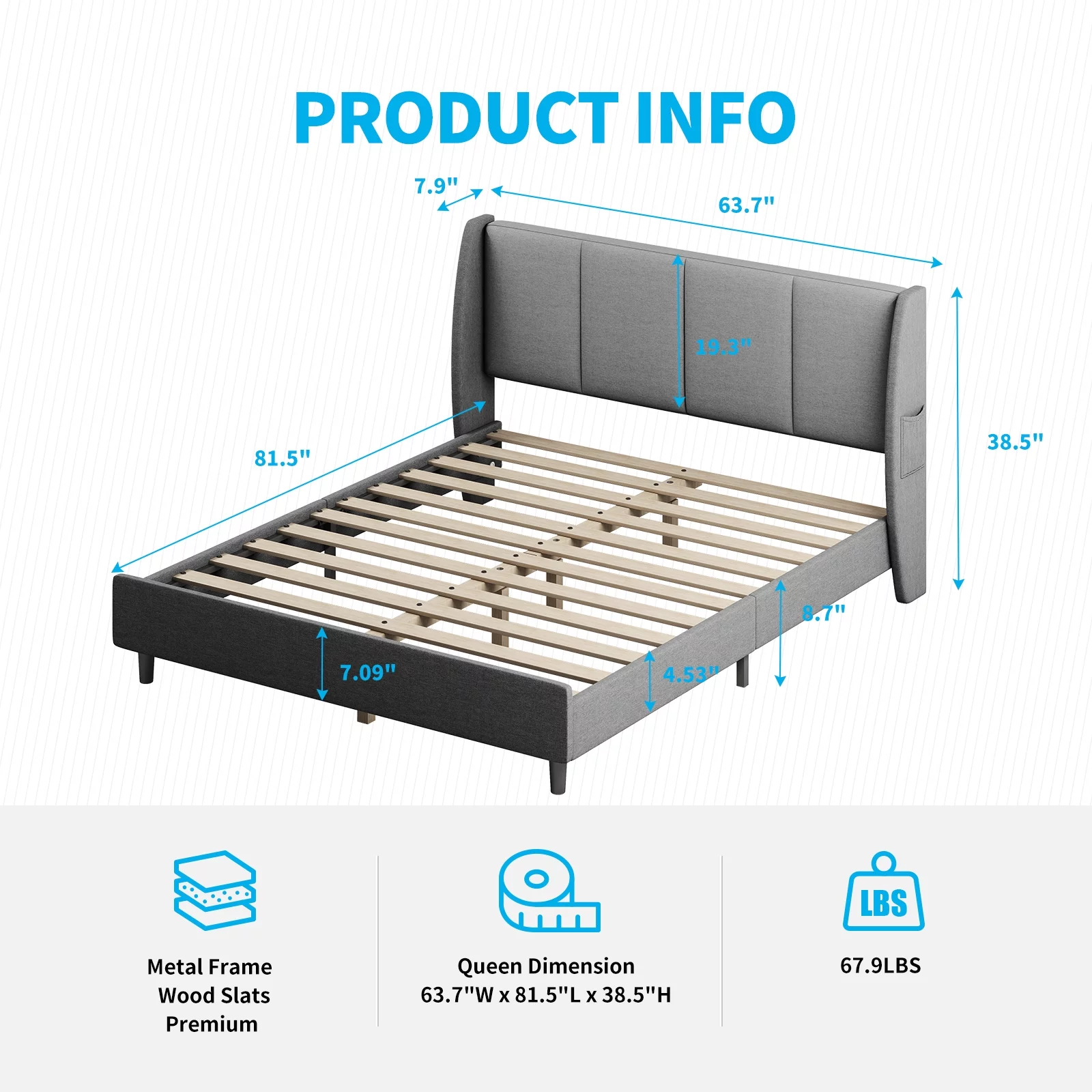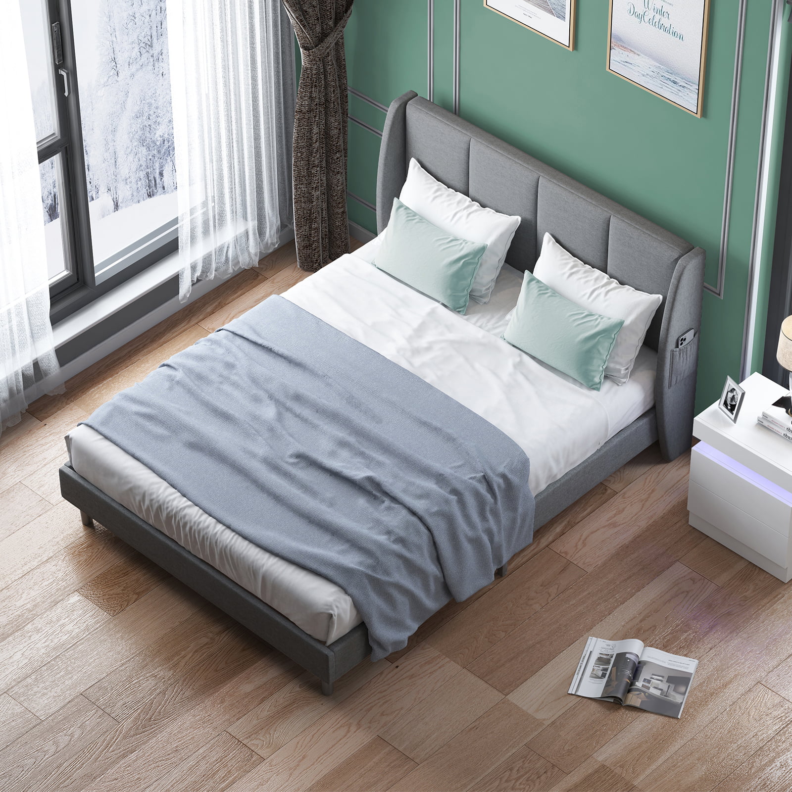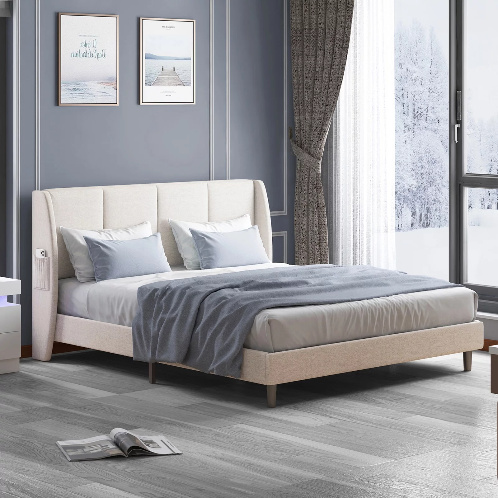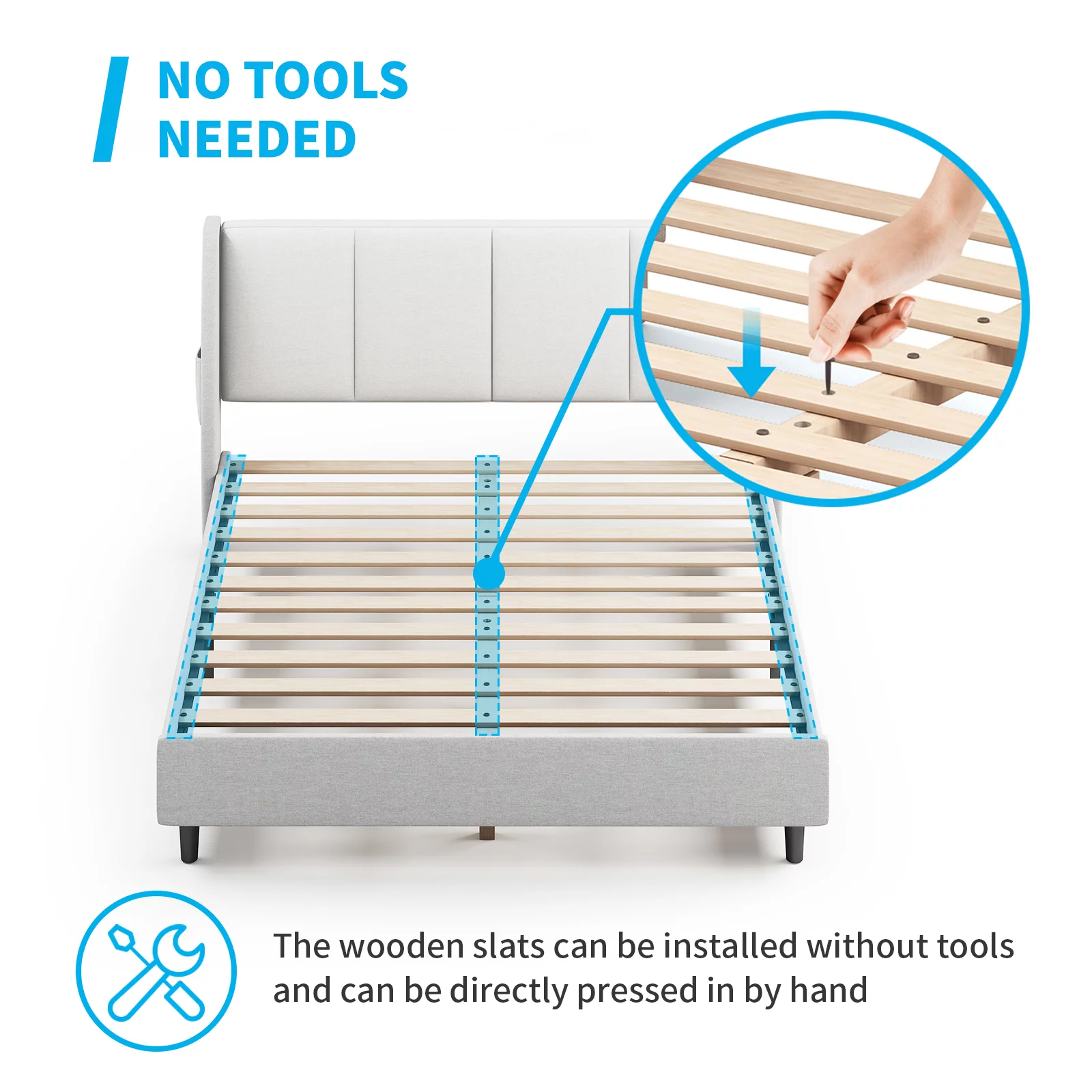 Muzz Platform Bed Frame, Full Size Modern Bed Frames with 2 Large Side Pockets, Bed Frame No Box Spring Needed/Easy Assembly/No Mattress (Full, Beige)