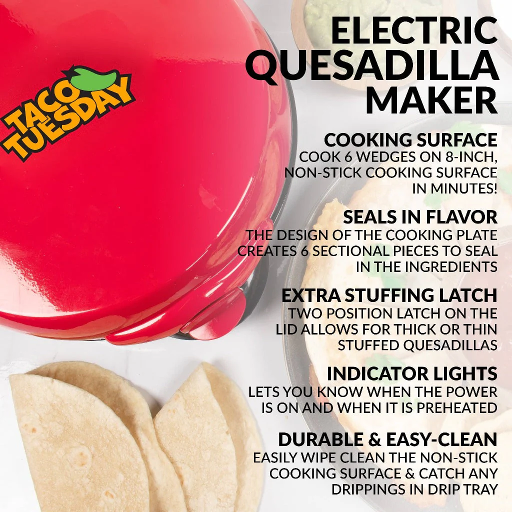 Taco Tuesday Deluxe 8-Inch 6-Wedge Electric Quesadilla Maker with Extra Stuffing Latch