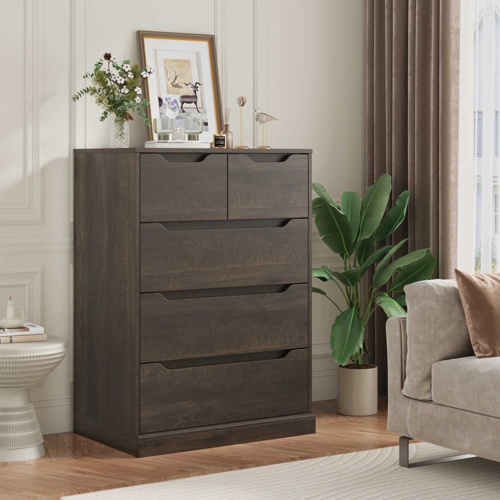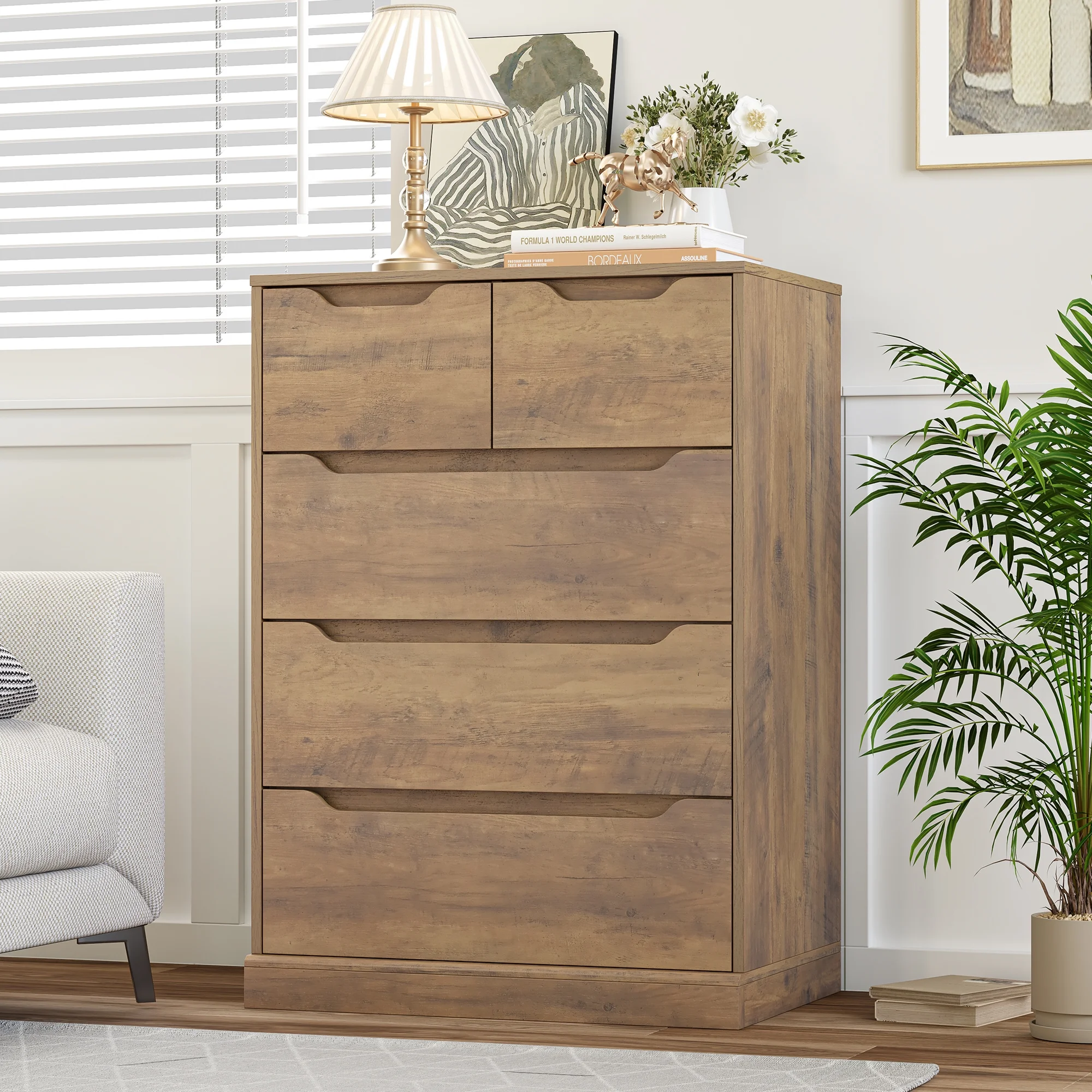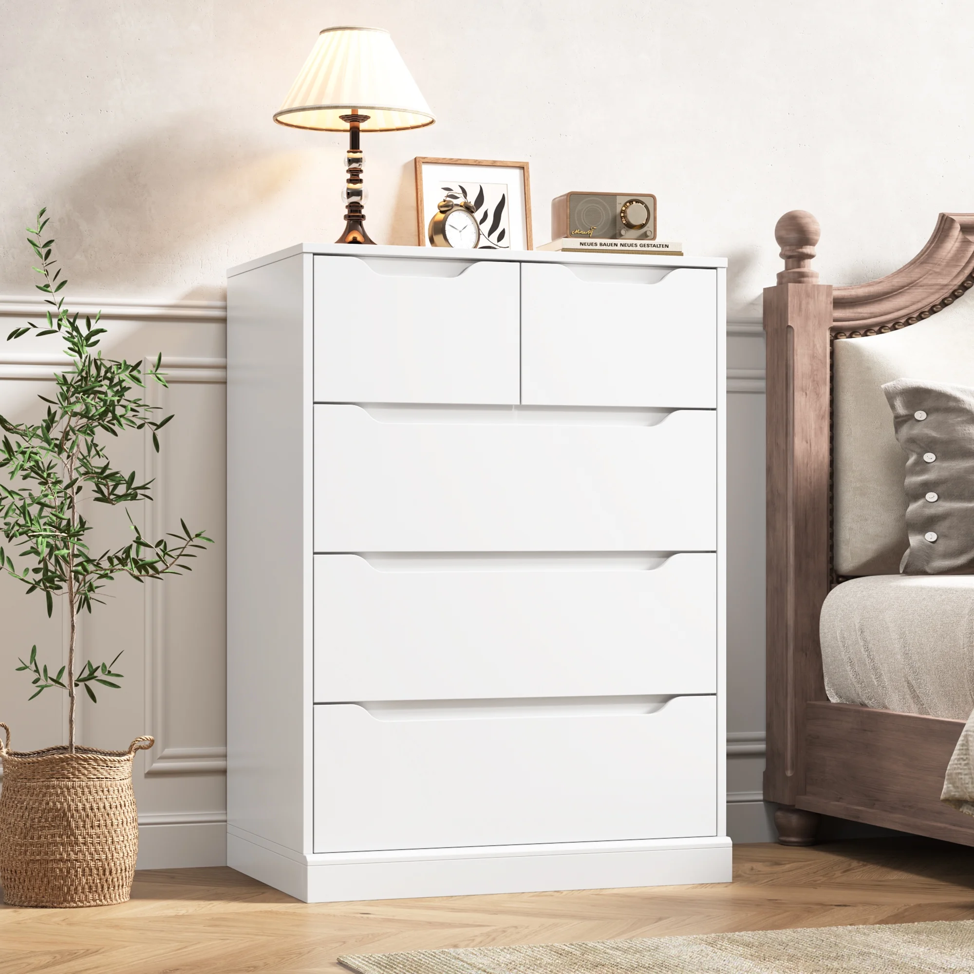 Homfa White Dresser for Bedroom, Vertical Chest of 5 Drawers Handleless Wood Storage Cabinet for Living Room