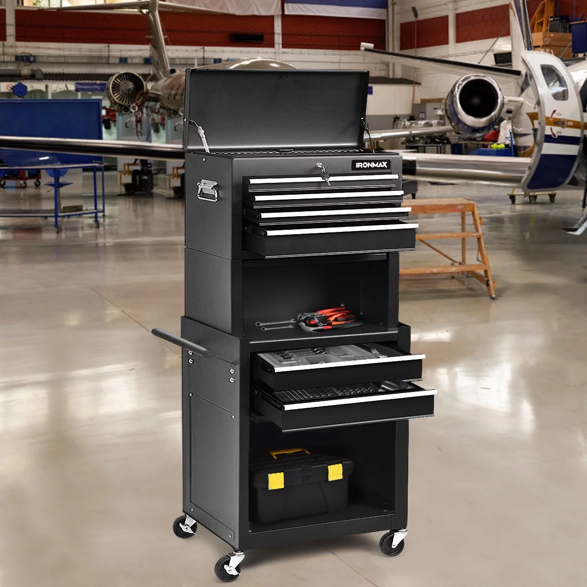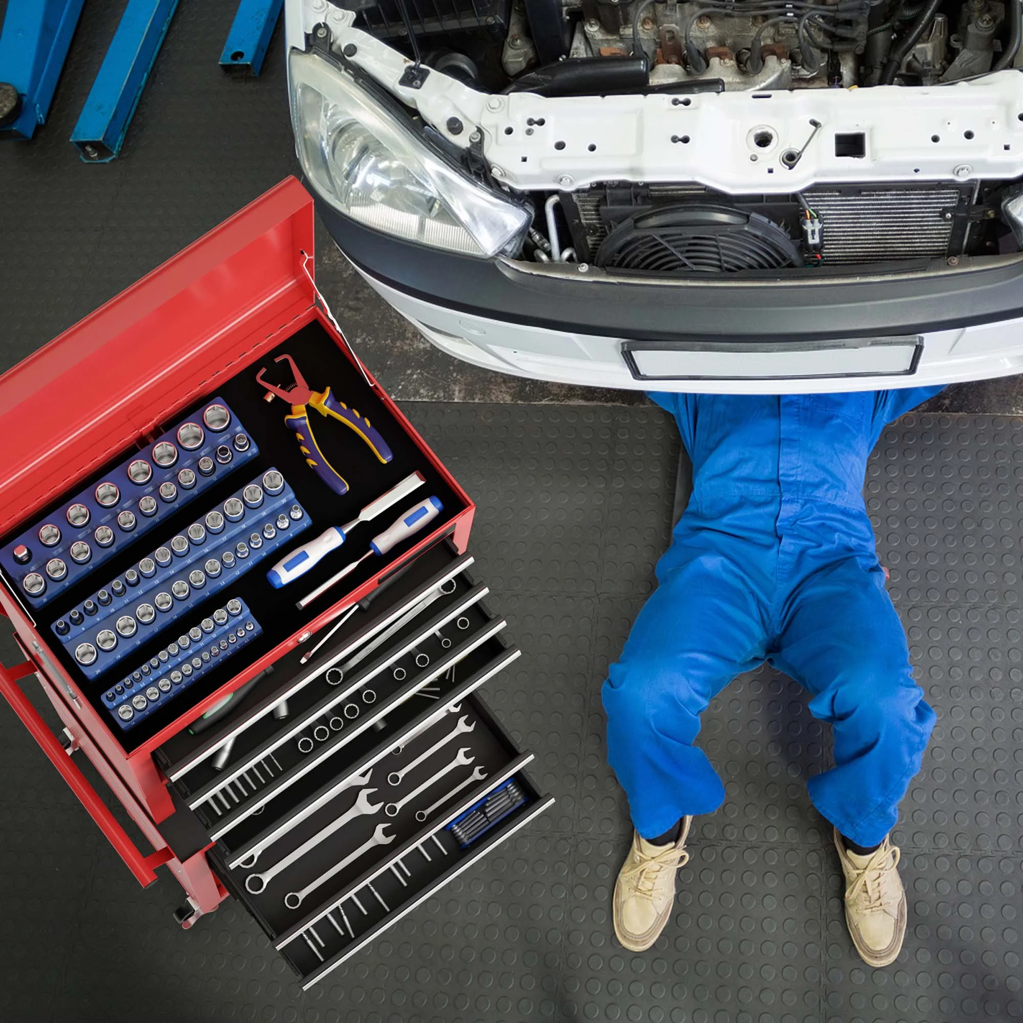 Costway 6-Drawer Rolling Tool Chest Storage Cabinet w/Riser Red