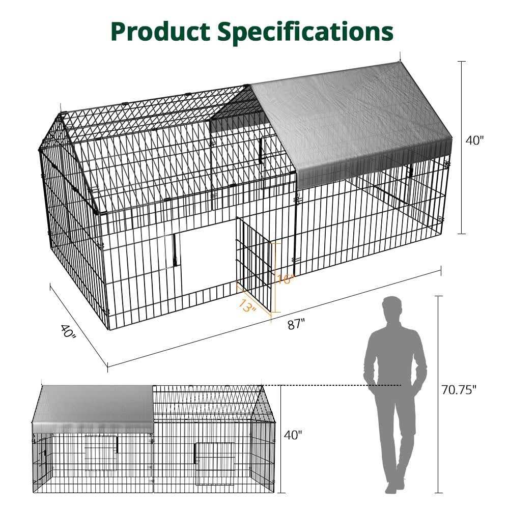 PawGiant Chicken Coop 86×40 Chicken Run Pen for Yard with Cover Outdoor Metal Portable Chicken Tractor Cage Enclosure Crate Outside for Small