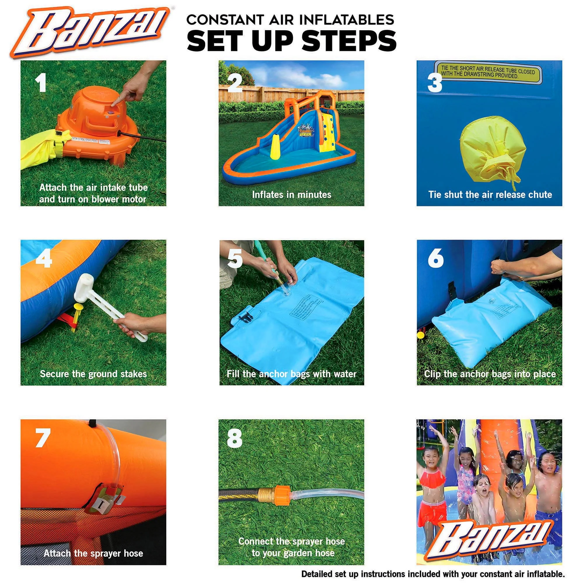 Banzai Surf N' Splash Water Park, Length: 14 ft 5 in, Width: 10 ft 7 in, Height: 7 ft 11 in, Inflatable Outdoor Backyard Water Slide Splash Toy
