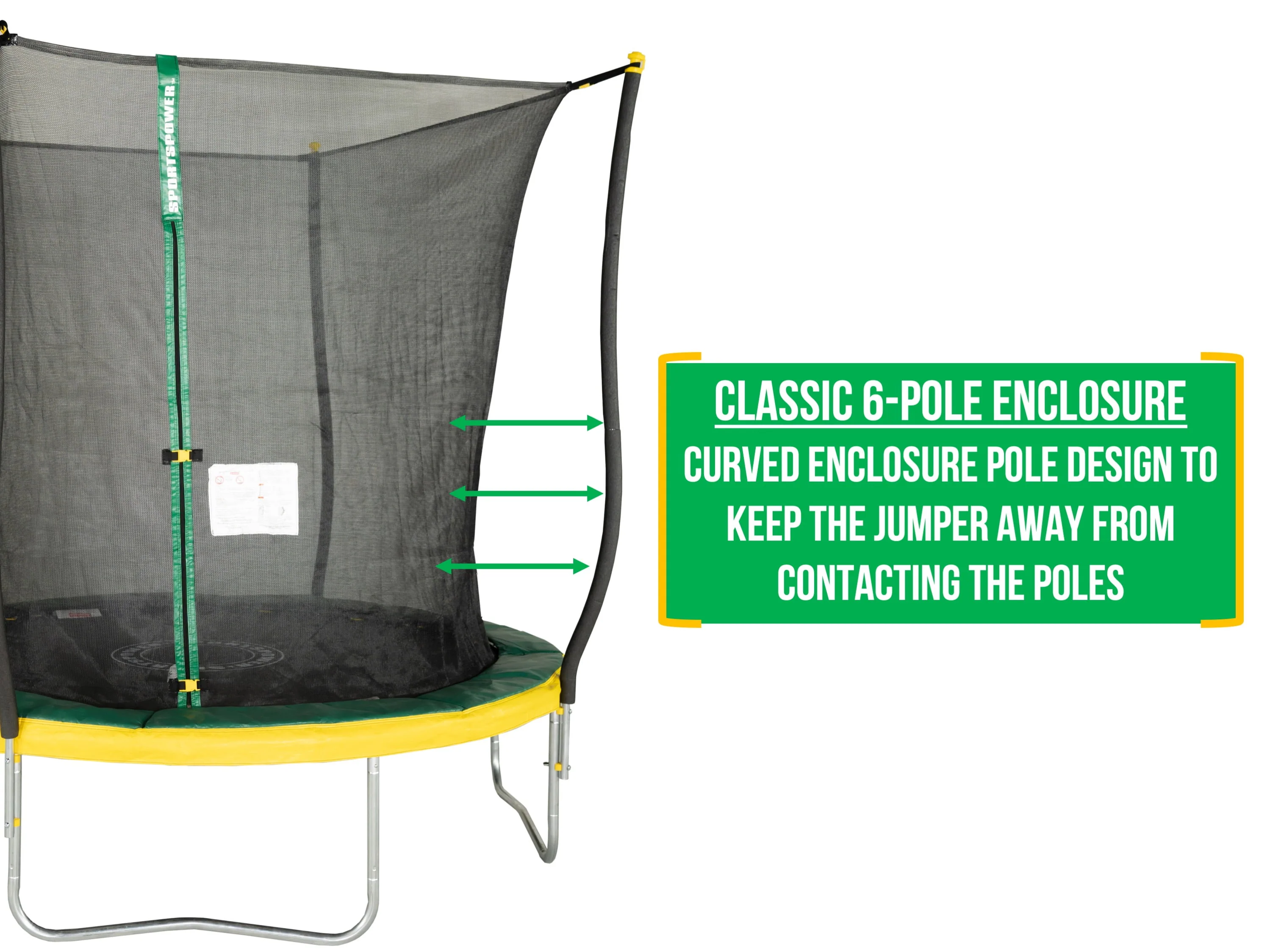 Bounce Pro 8' Trampoline, Flash Light Zone, Classic Safety Enclosure, Green/Yellow