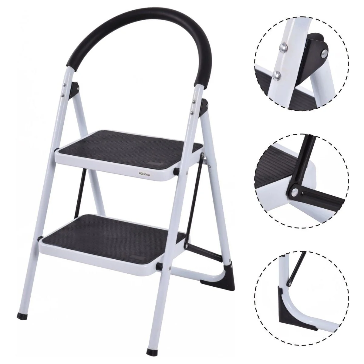 Costway 2 Step Ladder Folding Stool Heavy Duty 330Lbs Capacity Industrial Lightweight