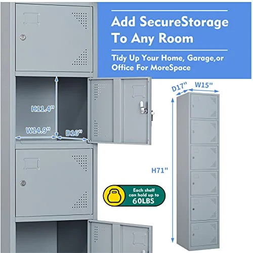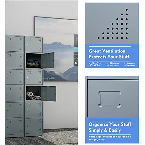 Yizosh Metal Locker for Gym, School, Office, 71" Metal Storage Locker Cabinets for Employees, Students Steel Lockers Four Tier with 4 Doors (Grey) - Curated Treasures Market