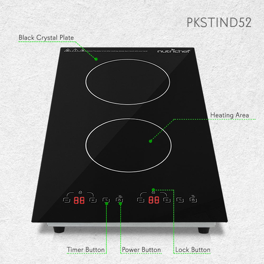 NutriChef 1800W Dual Induction Adjustable Double Countertop Cooktop Burner