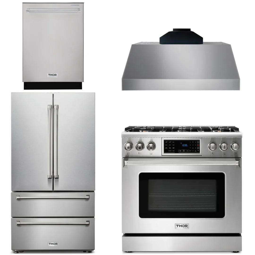 Thor Kitchen Package - 36 Gas Range, Range Hood, Microwave, Refrigerator, Dishwasher, AP-TRG3601-C-2