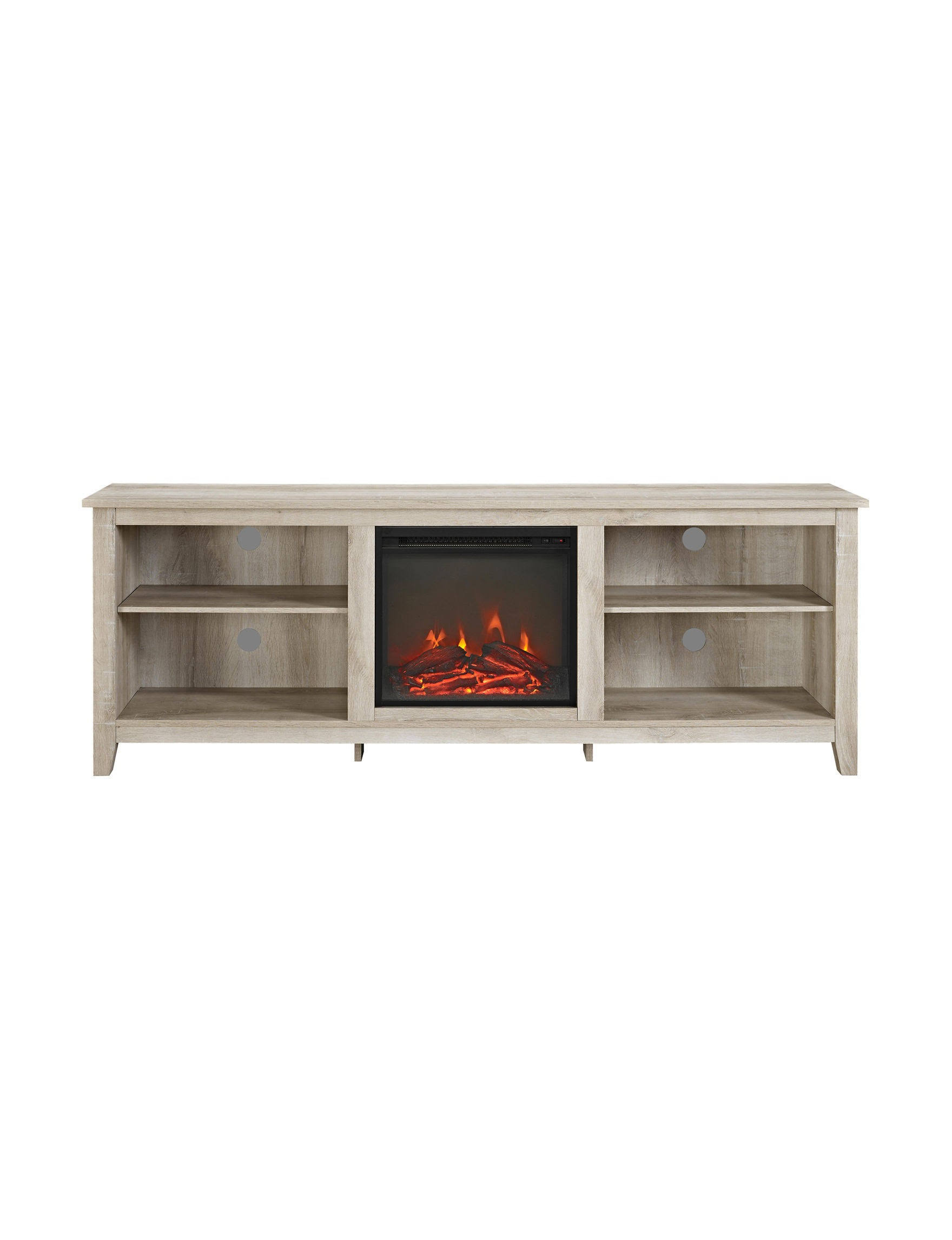 Walker Edison 70" Wood Media TV Stand Console with Fireplace - White Oak - Megean