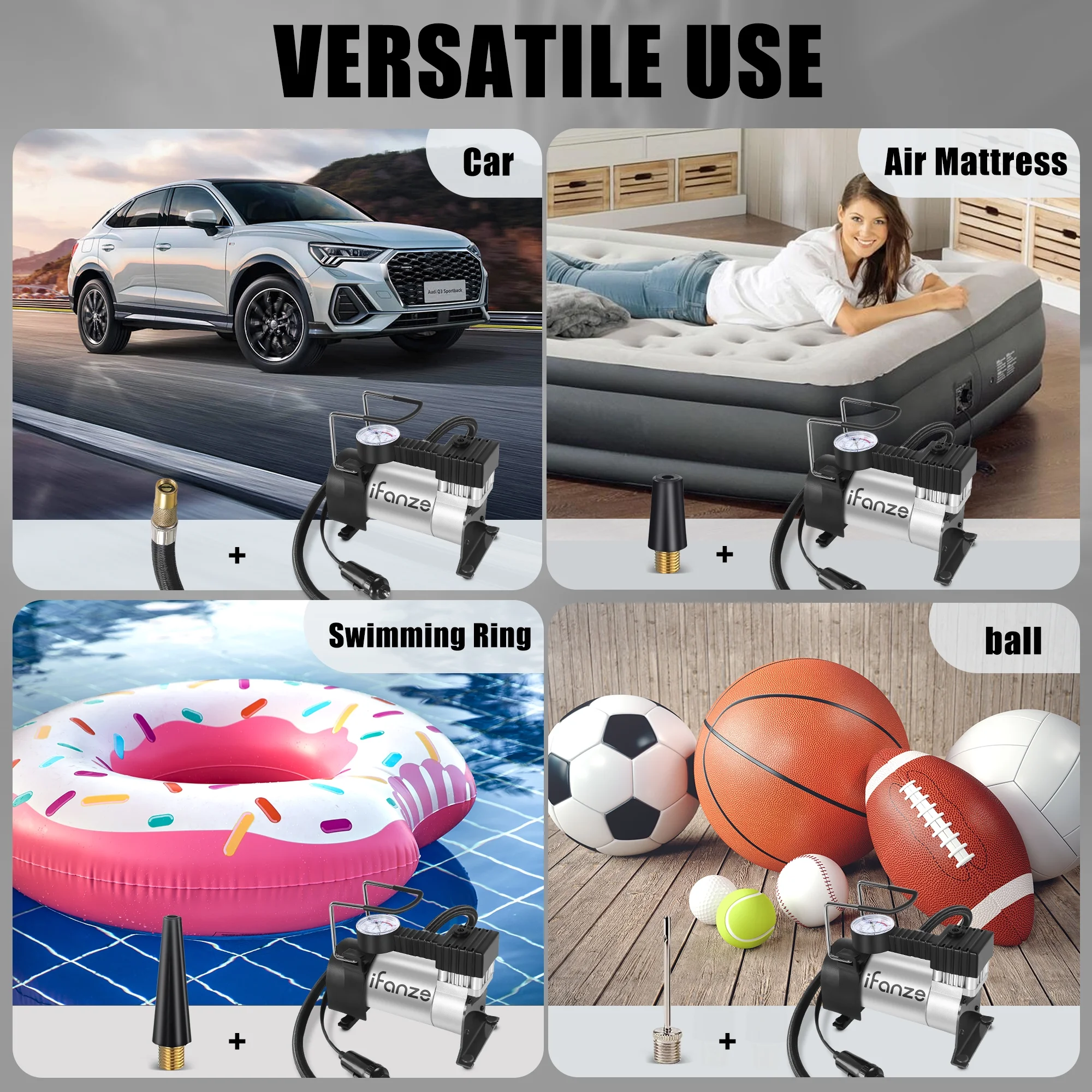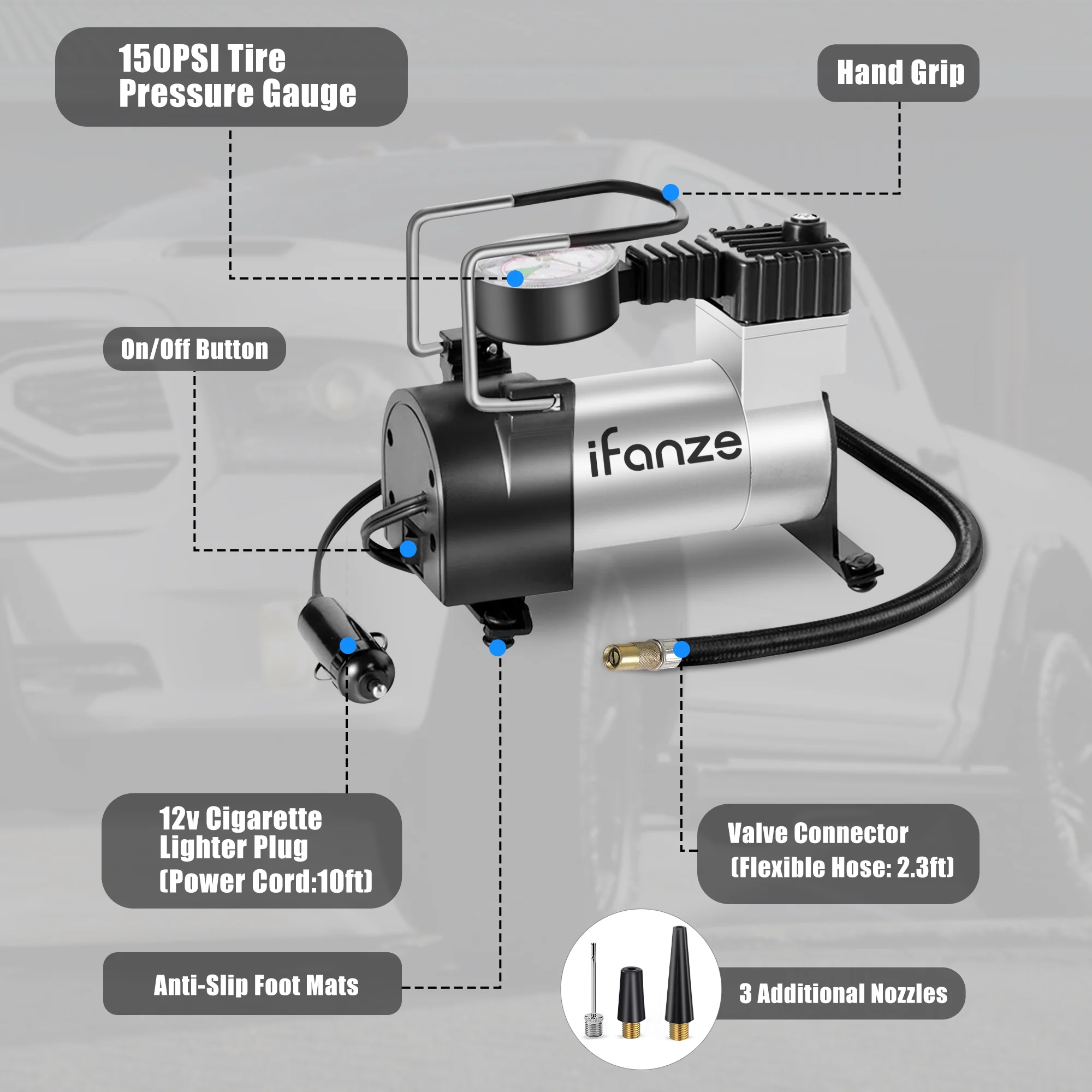 iFanze Tire Inflator Portable Air Compressor Pump DC 12V Tire Inflator for Car, Air Pumps with Mechanical Pressure Gauge for Car, Bicycle, Motorcycle, Basketball