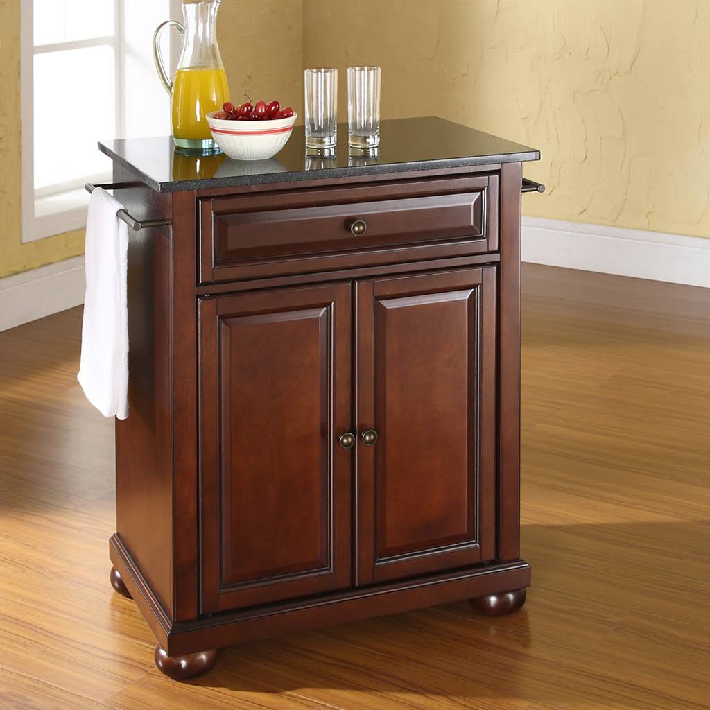 Alexandria Solid Black Granite Top Portable Kitchen Island - Crosley - Mahogany - Megean