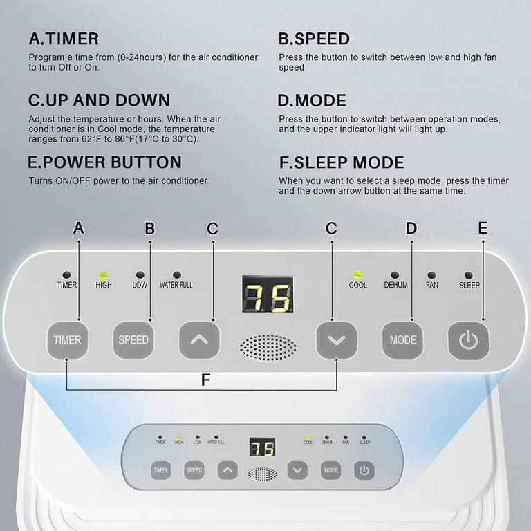 Auseo 5000 BTU (8000 BTU ASHRAE) Portable Air Conditioner, AC, Cools 250sq. ft, 24H Timer, Quiet Operation, Window Fan, 2 Fan Speed for Bedroom Office Home