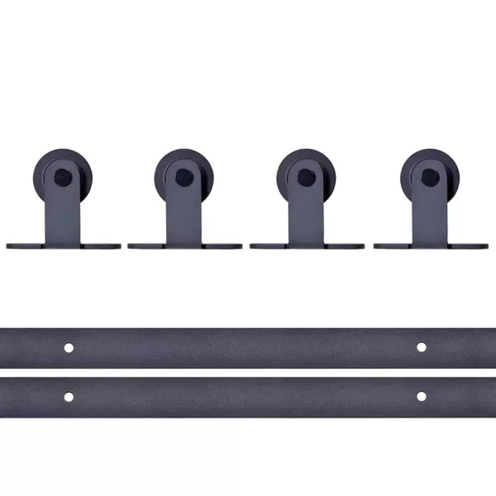 Top Mount 144 in. Matte Black Double Track Barn Door Hardware Kit - Avayadevconnect
