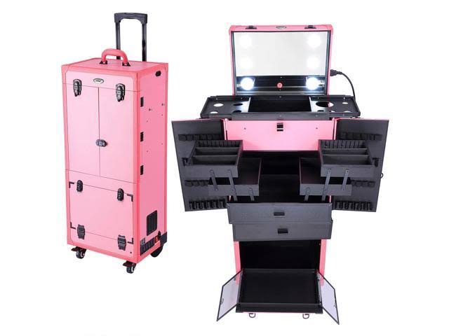 AW Pro Artist Multifunction Rolling Makeup Case, Pink/ Black - Megean