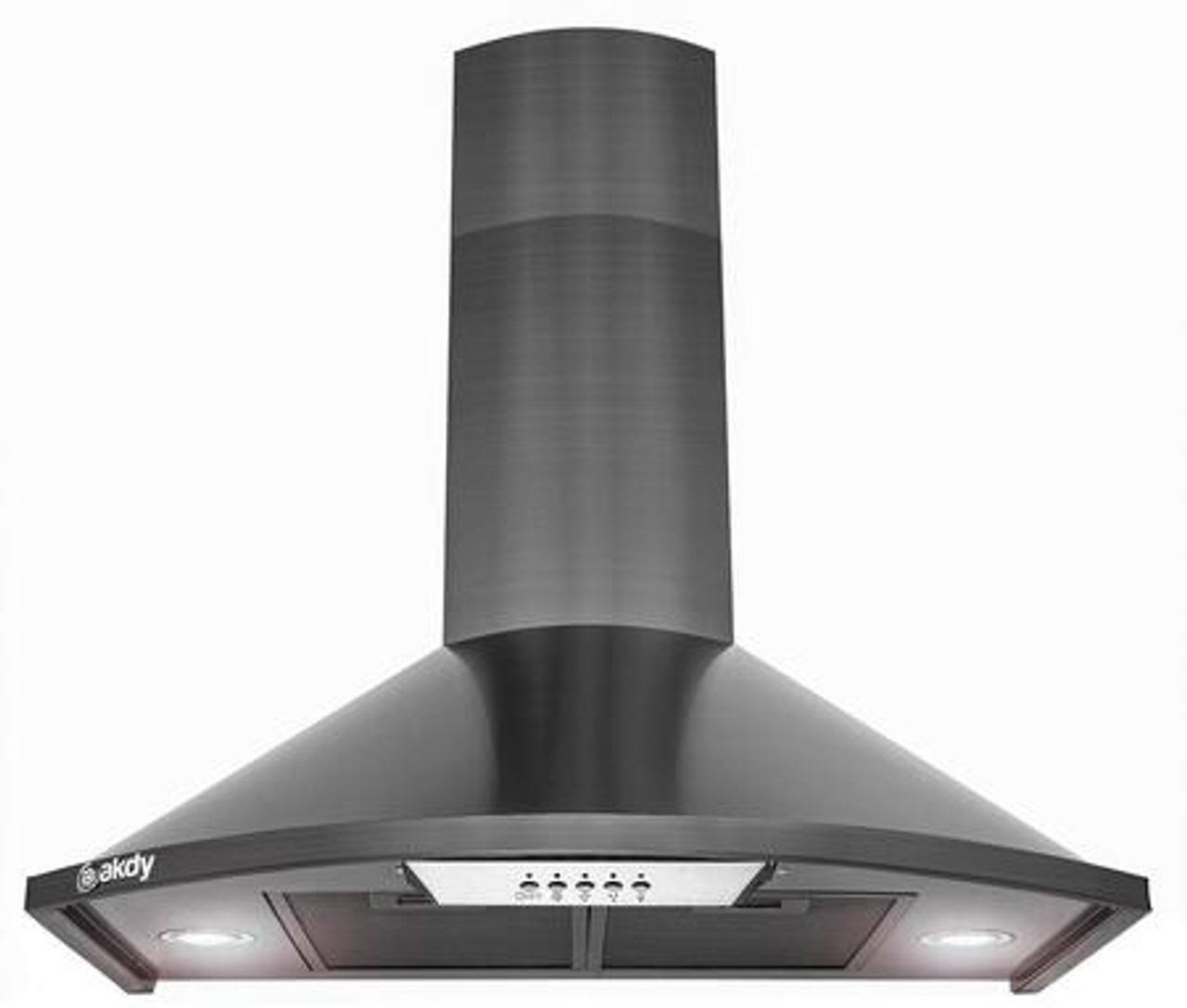 AKDY RH0486 30" Wall Mount Range Hood with 343 CFM Push Button Control Mesh Filters LED Lighting in Black Stainless Steel - Megean