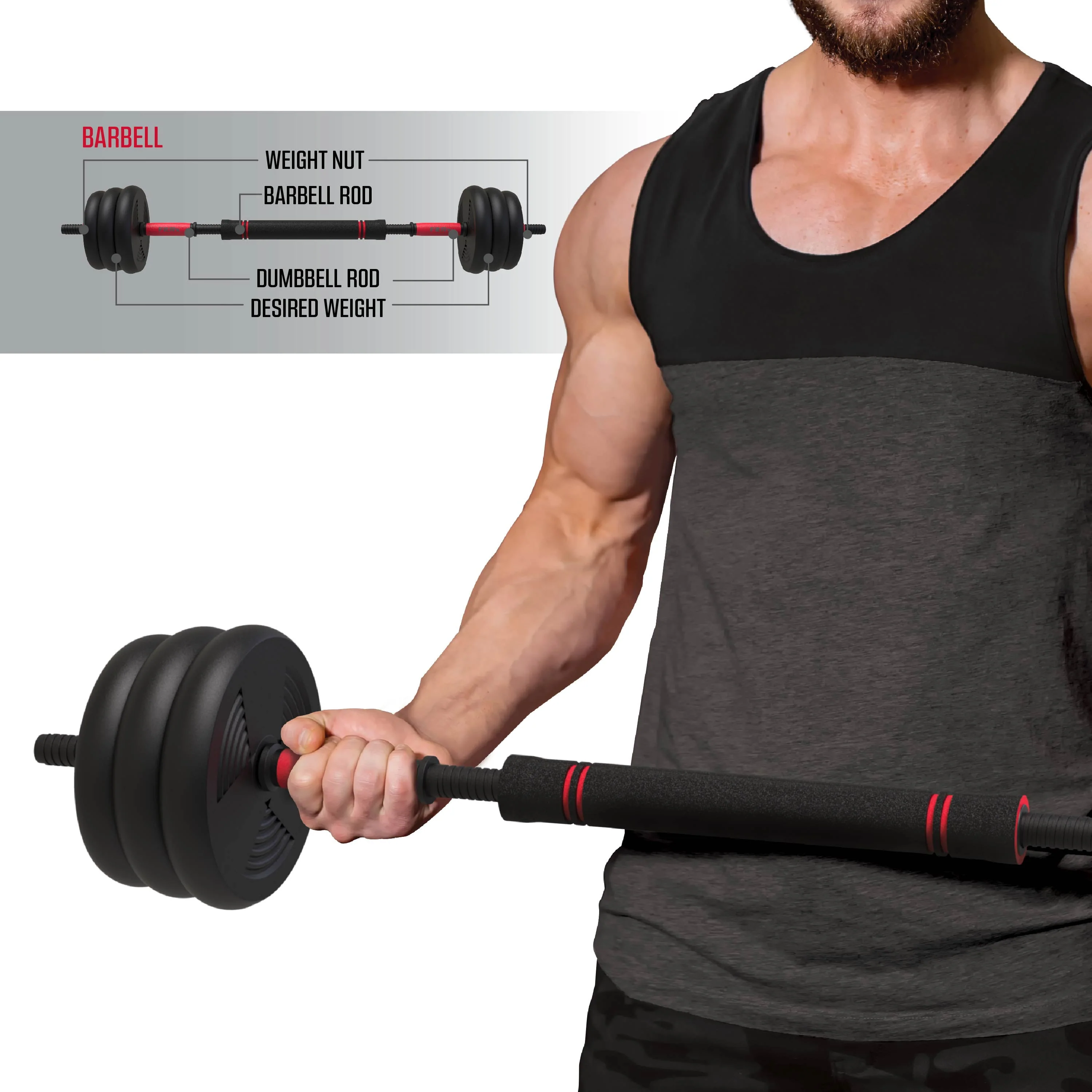 FitRx SmartBell Gym, 60 lbs. 4-in-1 Adjustable Interchangeable Dumbbell, Barbell, and Kettlebell Weight Set, Black