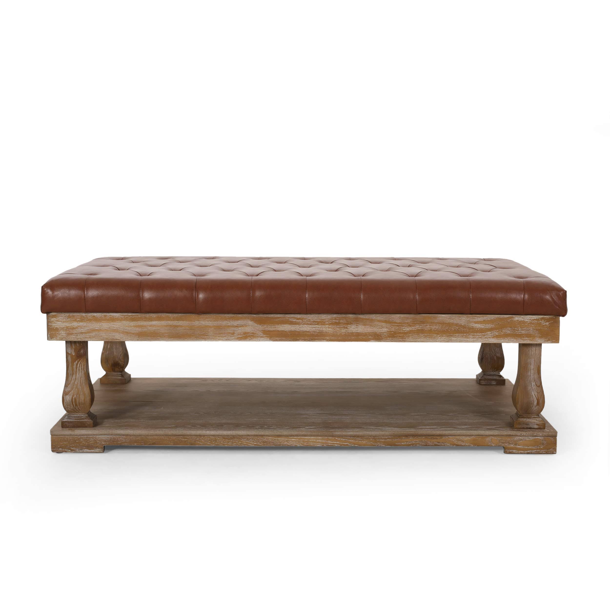 Christopher Knight Home Gavin Contemporary Upholstered Rectangular Ottoman, Cognac Brown and Weathered - Megean