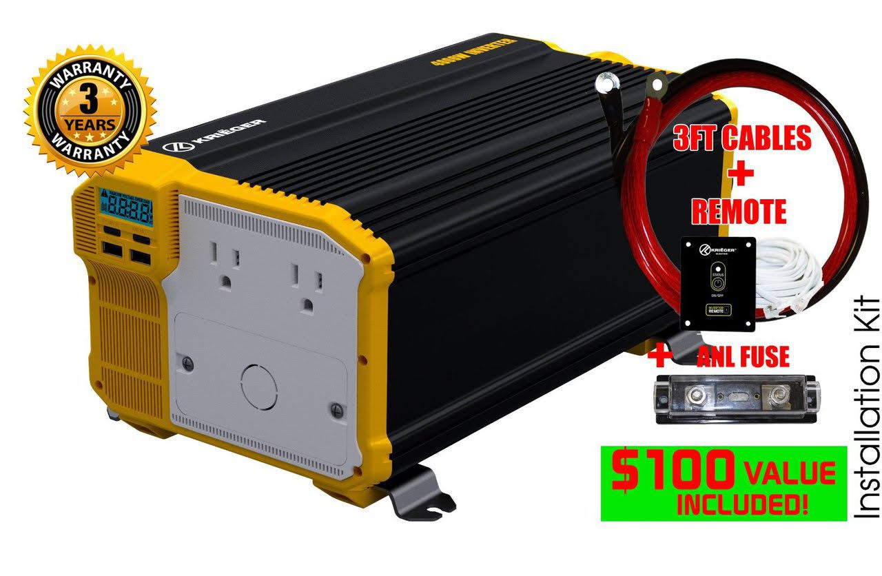 Kriger 4000 Watt 12V Power Inverter Dual 110V AC Outlets Automotive - Megean