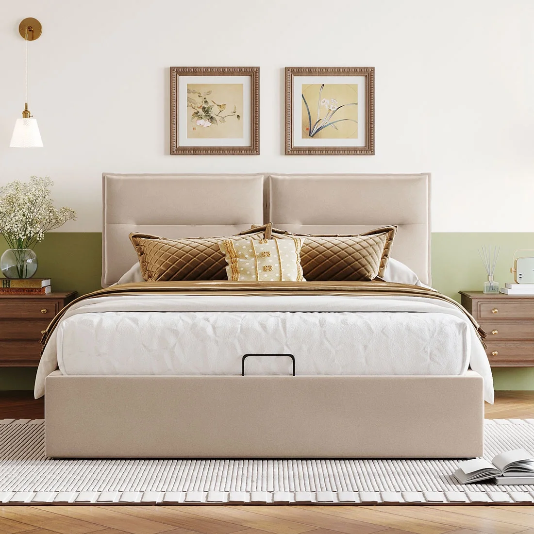 Yone jx je Kelfluxion Upholstered Platform bed with a Hydraulic Storage System. Queen size. Perfect for Small Space.Bedroom.Industrial Storage Bed Frame.No Box Spring Needed. Beige