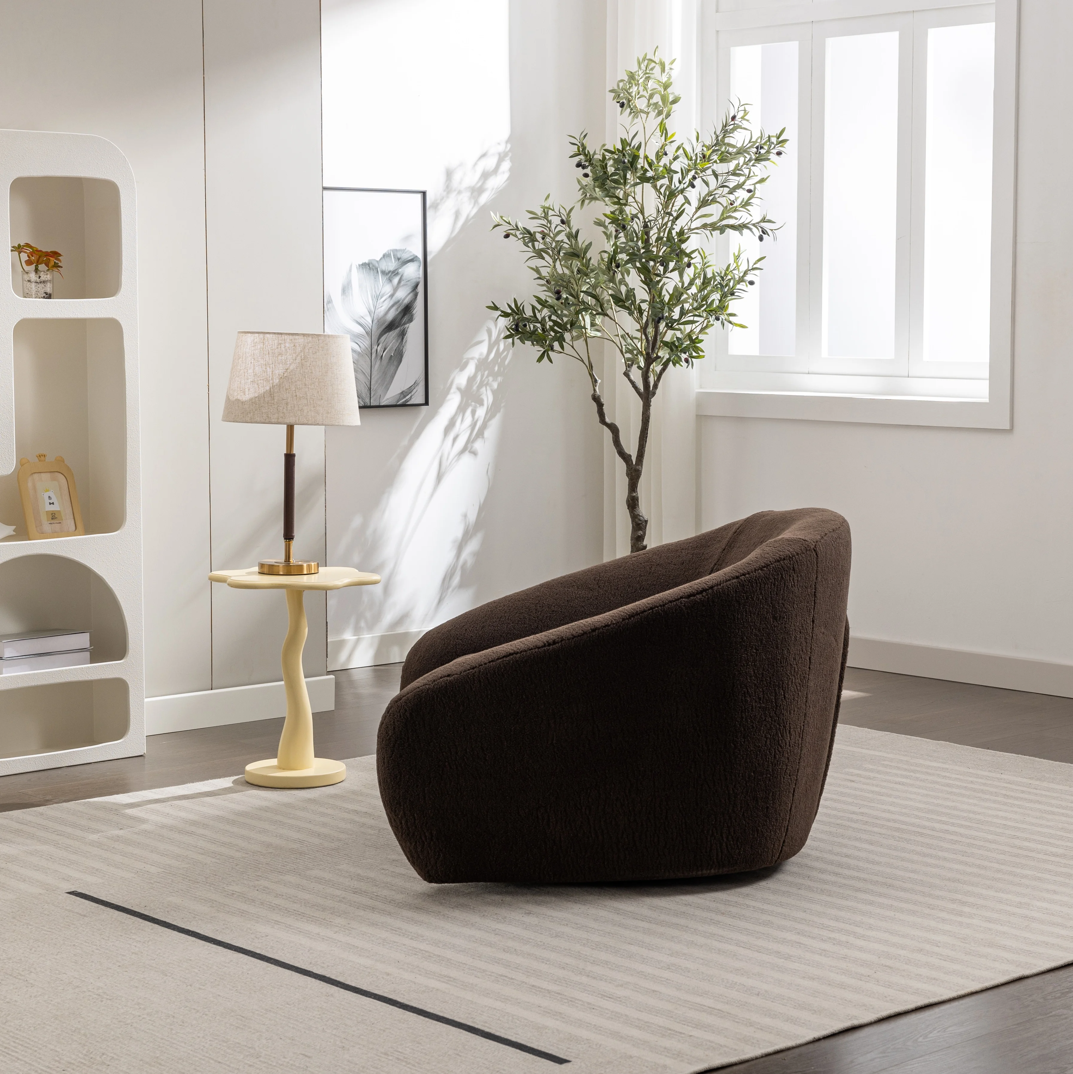 Roundhill Furniture Luzern Modern Boucle Upholstered Accent Chair, 360° Swivel, Chocolate - Curated Treasures Market