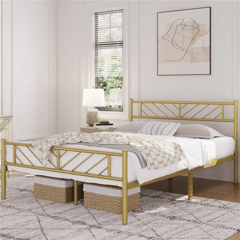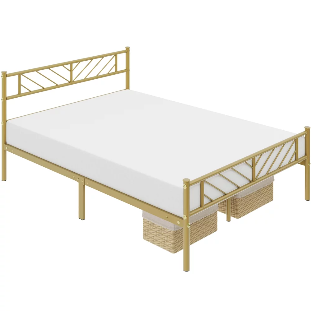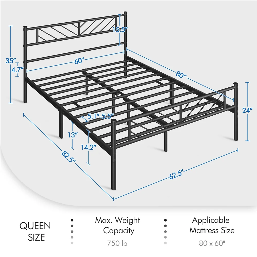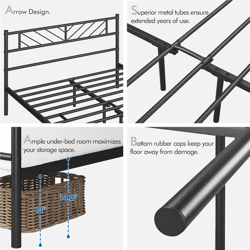 Yaheetech Metal Platform Queen Bed with Arrow Design Headboard and Footboard,Black